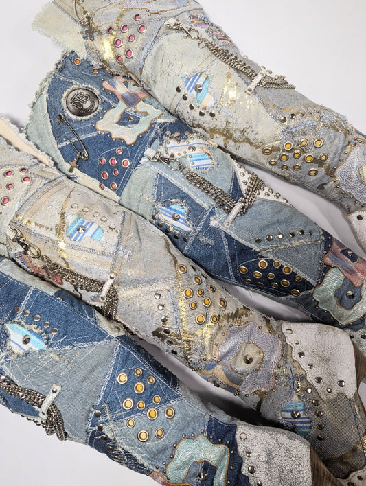Boots El Dantes in patchwork denim -EU37|UK4|US6
