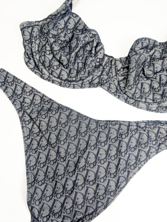 Dior 3-piece pareo and swimsuit set in blue trotter monogram - S/S2002