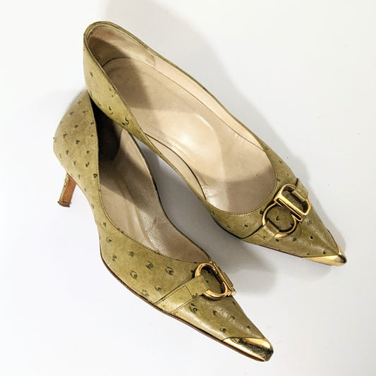 Dior pumps by Galliano green gold initial A/W 2000 - EU37|UK4|US6