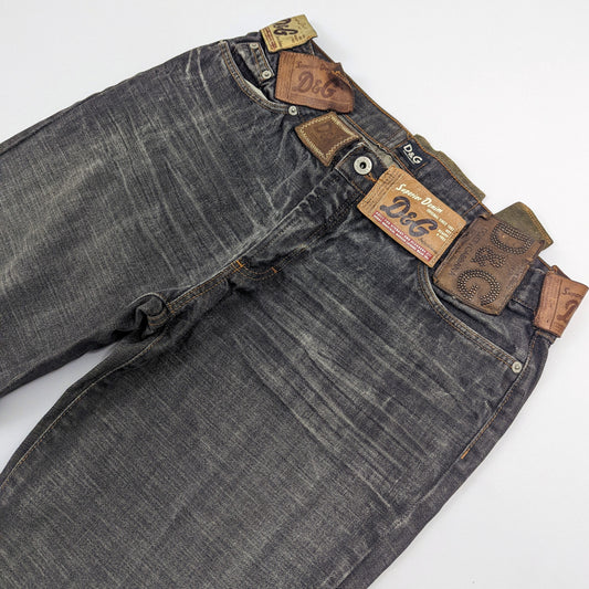 Jeans with multiple labels indicated "DG"