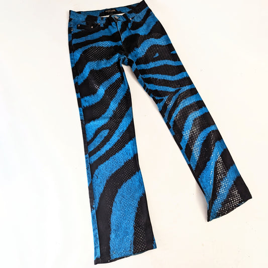 Sparkling jeans Roberto Cavalli zebra motif trompe l'oeil blue - M
