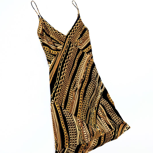 Roberto Cavalli Gold Chain Link Print Dress - S