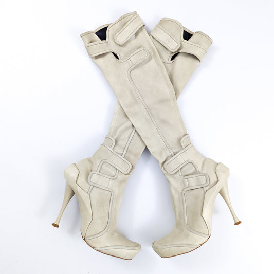 Celine high boots in beige leather -FW2008