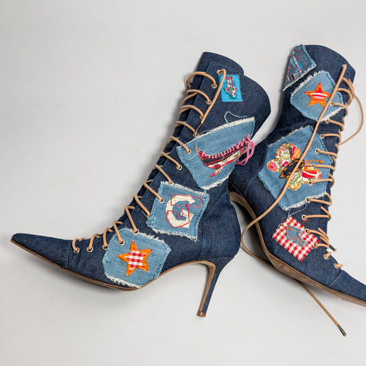 John Galliano patchwork denim boots - EU38|5UK|7US