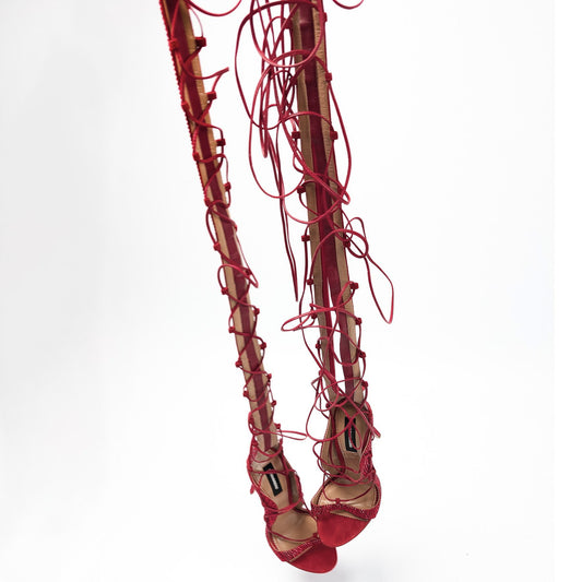 Dsquared2 Red High Lace Up Sandals - EU38|UK5|US7