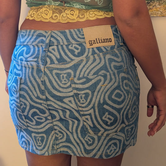 Dior by Galliano denim mini skirt with pink topstitching - M