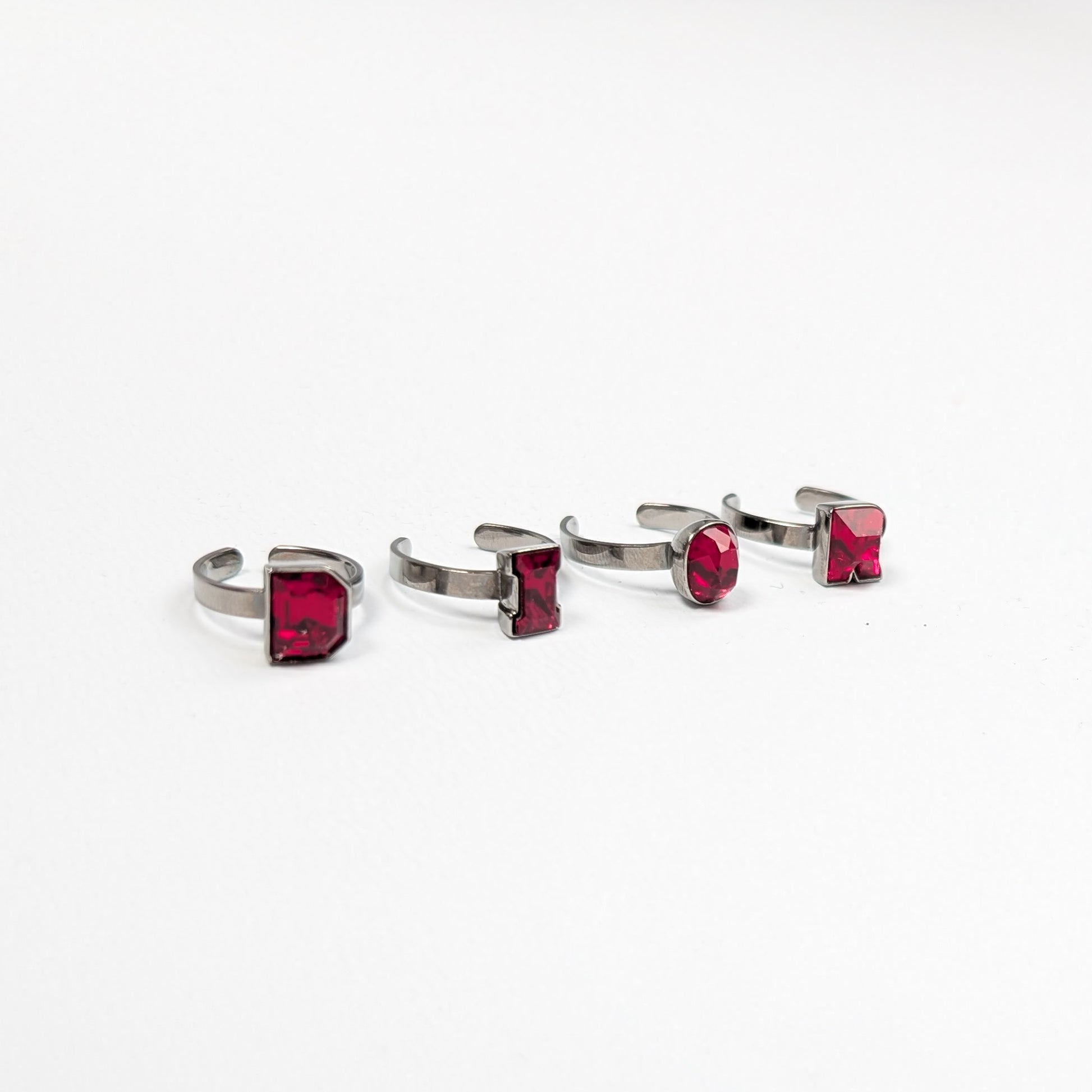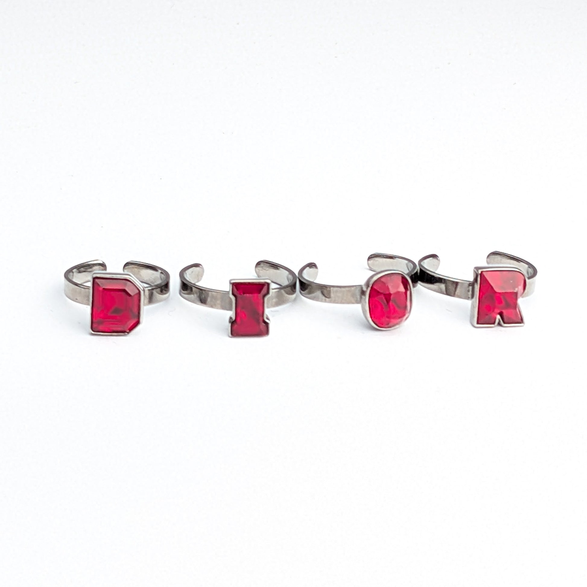 Item: Dior rings in silver and red Crystal. Set of 4 rings, to be worn on each finger.