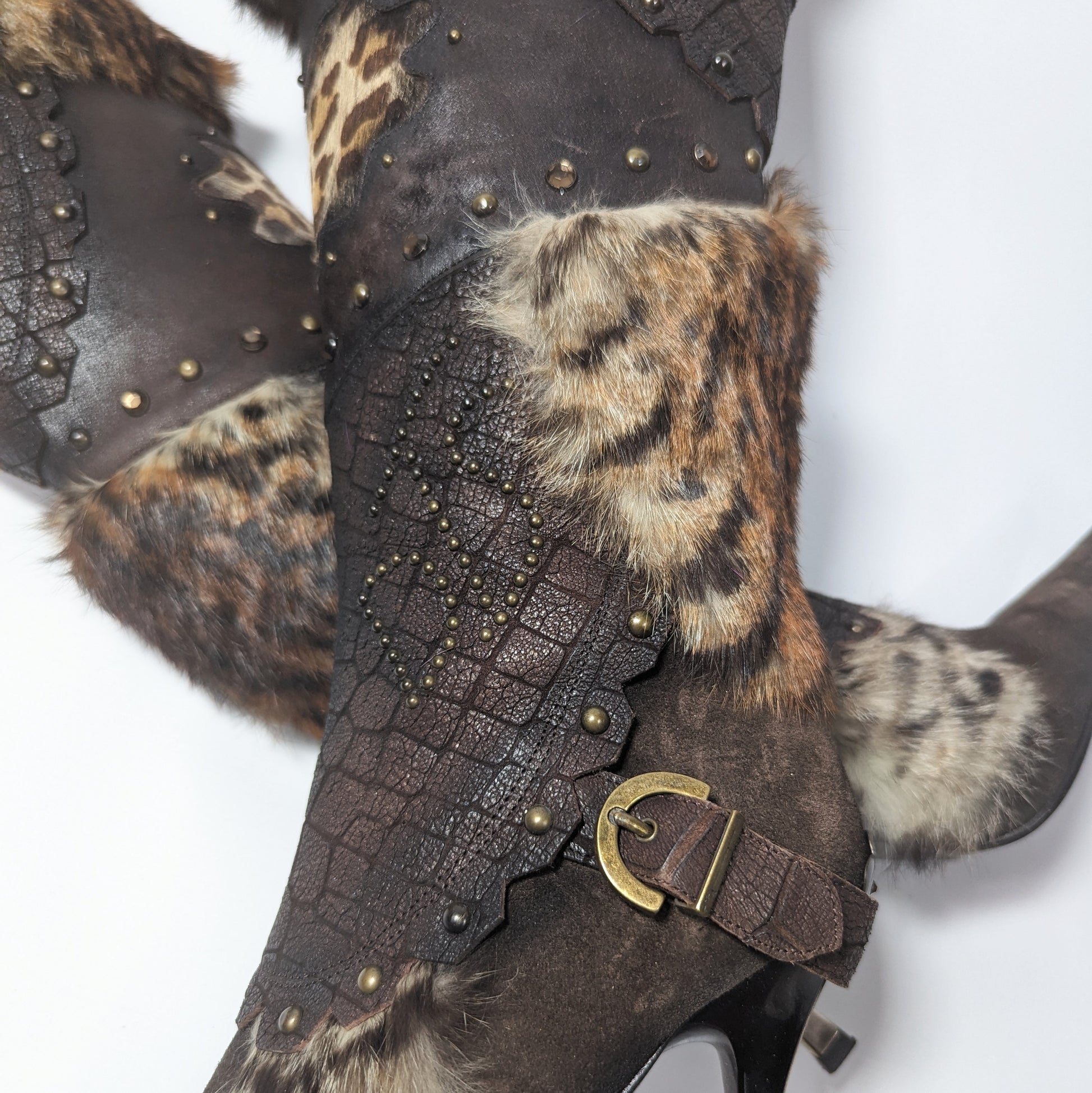 Item: El Dantes patchwork suede boots with animal-style fur trim.