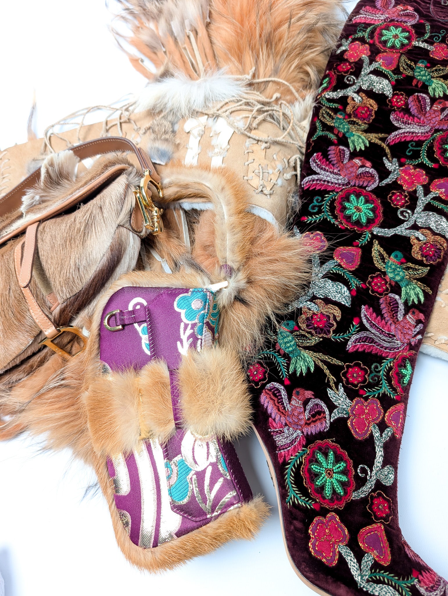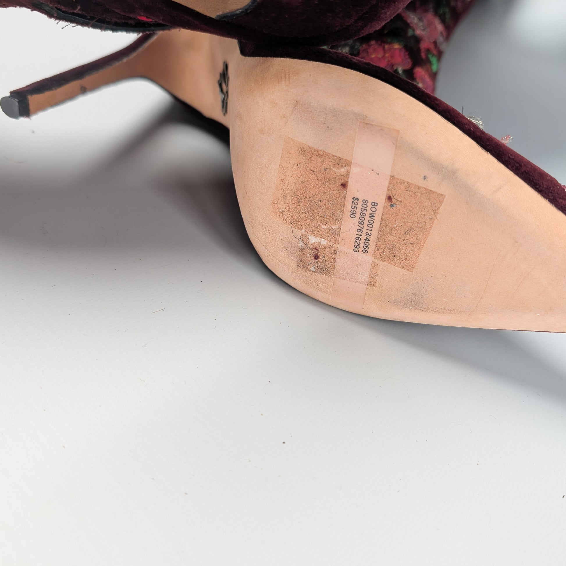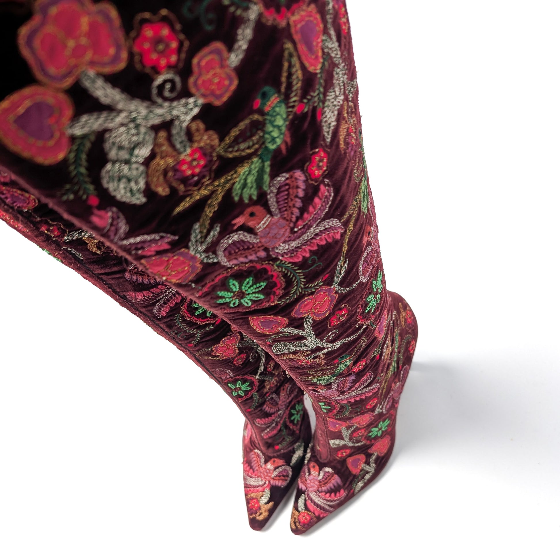 Item: Dsquared2 embroidered burgundy velvet boots .