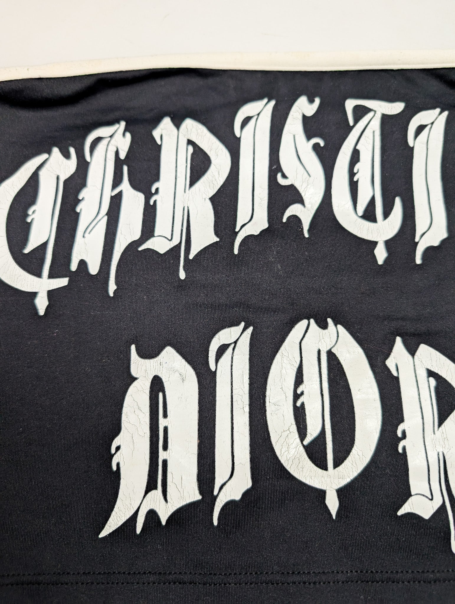 Item: Black bustier adorned with a gothic-style inscription "Christian".