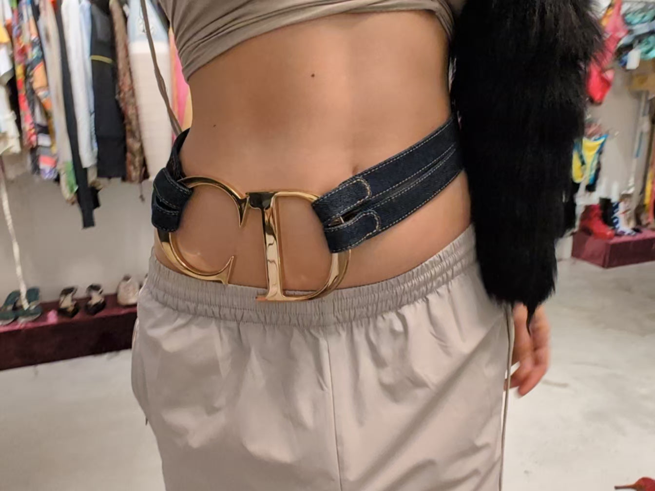Item : Denim belt with a buckle with the initials "CD". Very rare.
