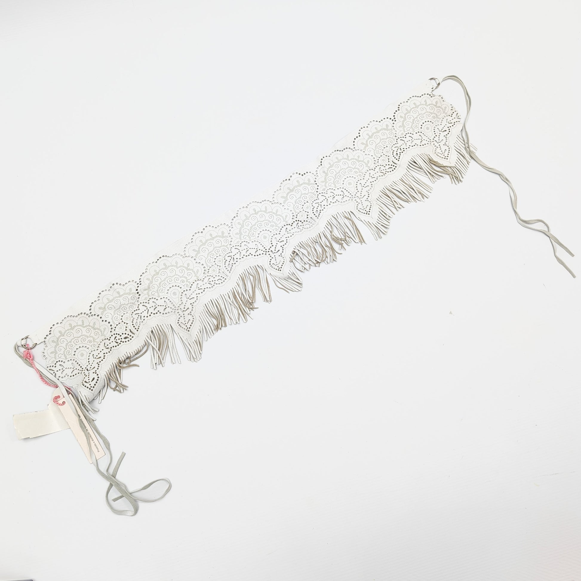 Item: Roberto Cavalli belt in ecru suede decorated with fringe.
