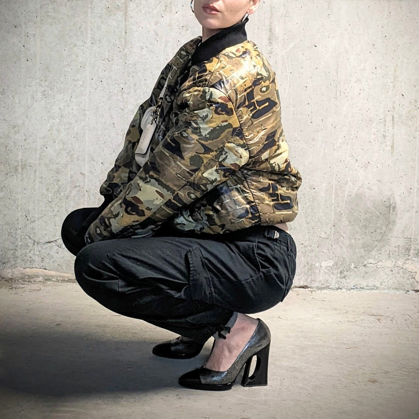 Item: Vintage Chanel pump in silver gray and black patent leather. Geometric heel, extremely comfortable and stable.