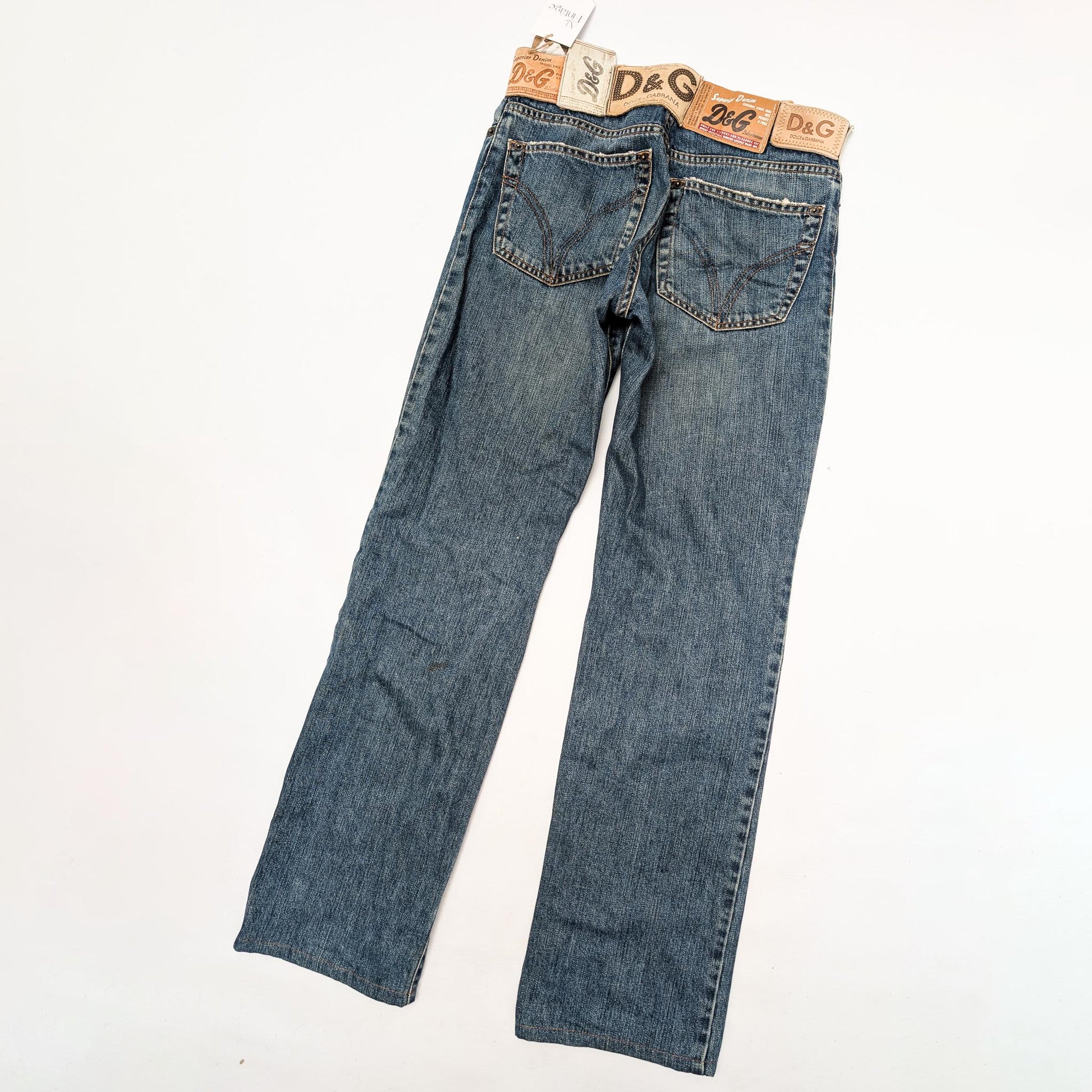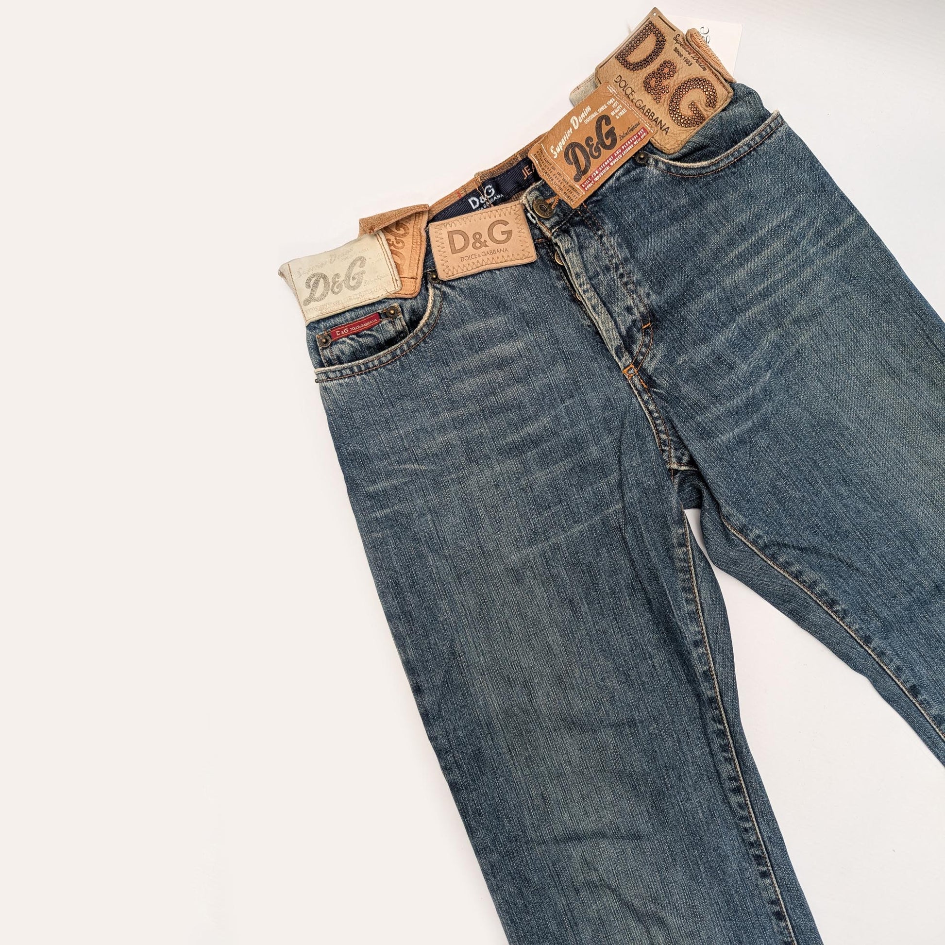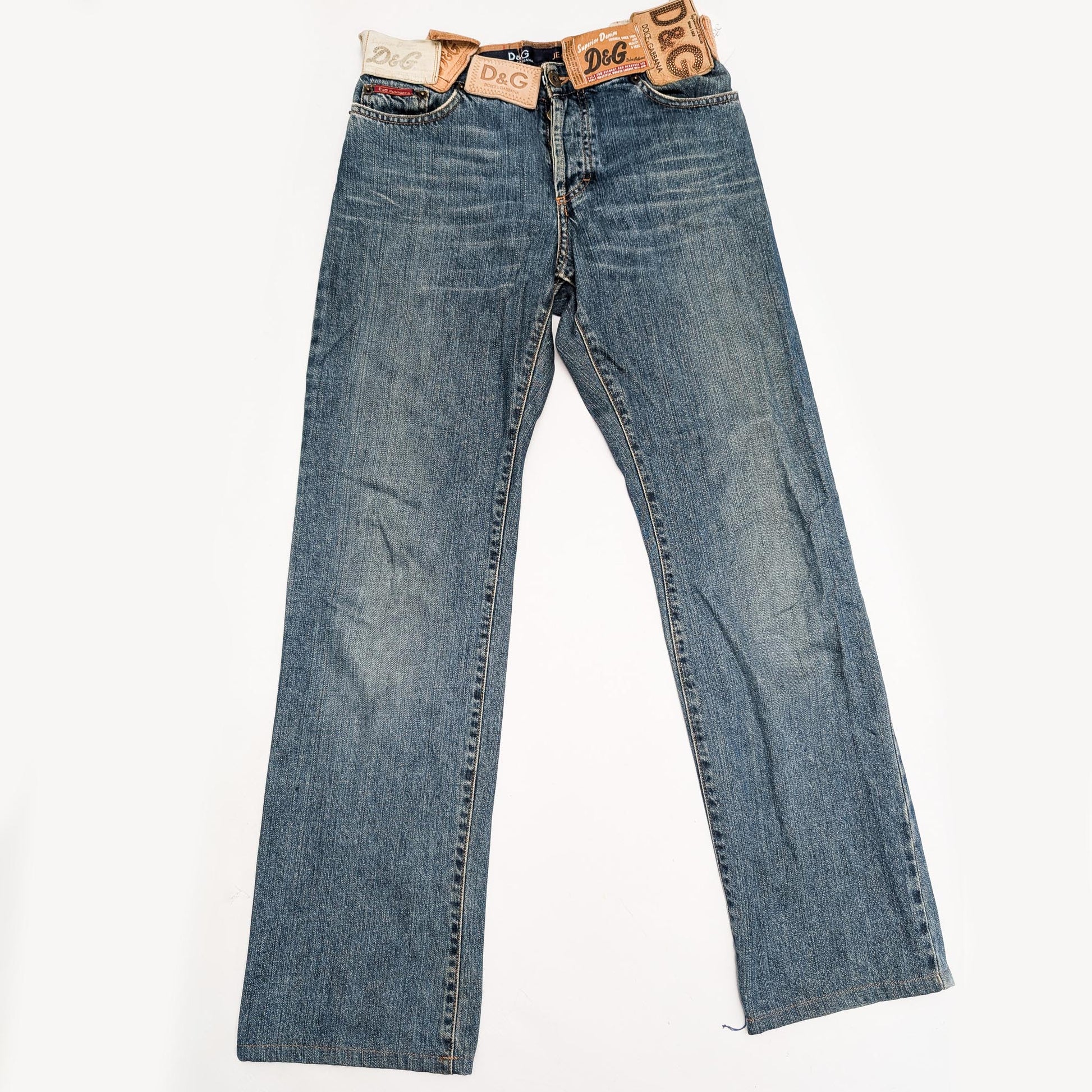 Item: Vintage low-rise straight jeans with multiple tags marked "DG"