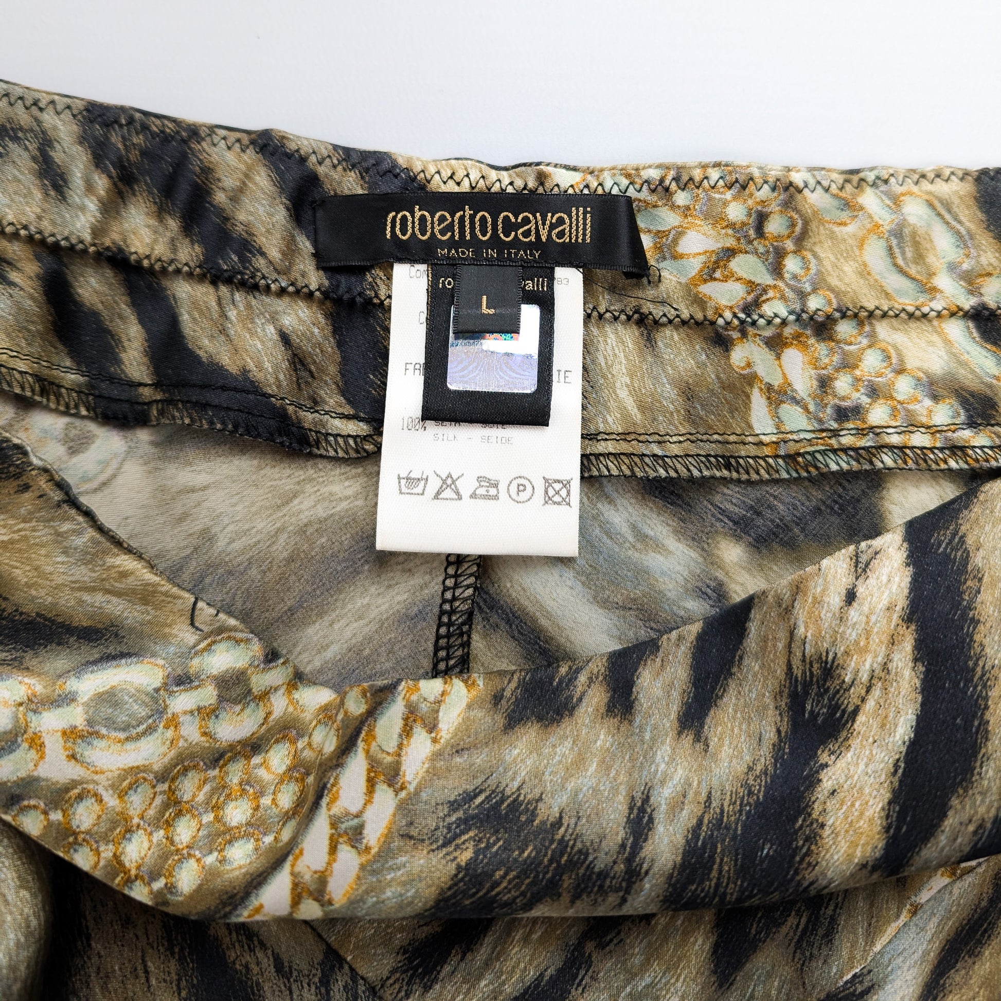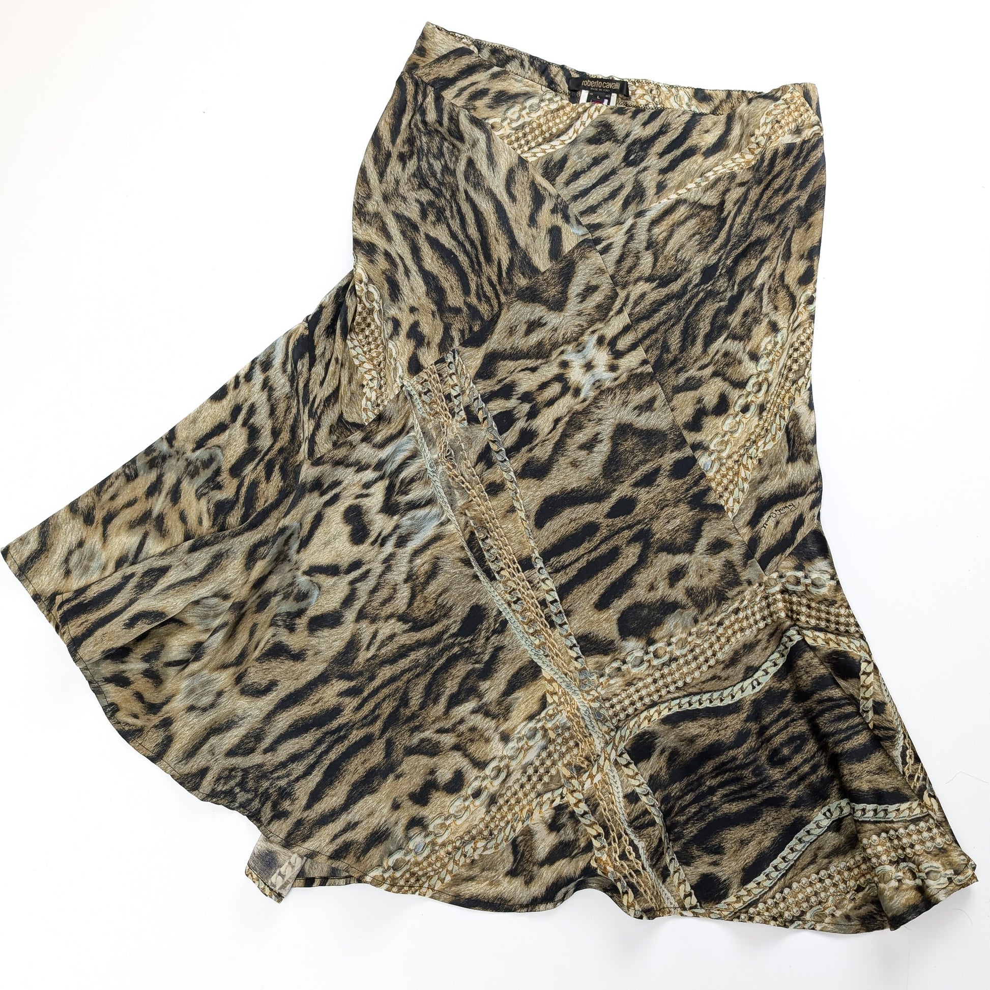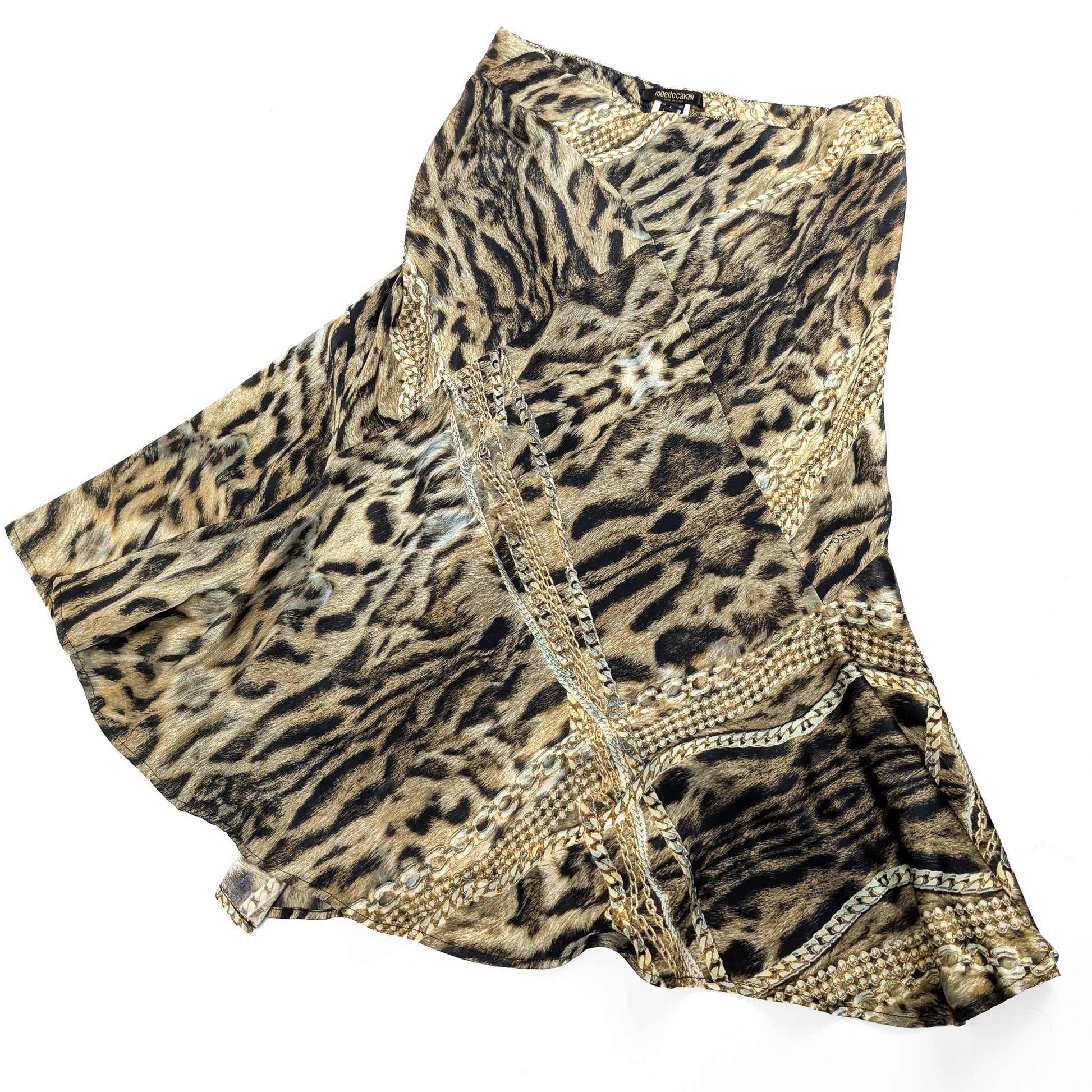 Roberto Cavalli Animal Print Silk Skirt - L