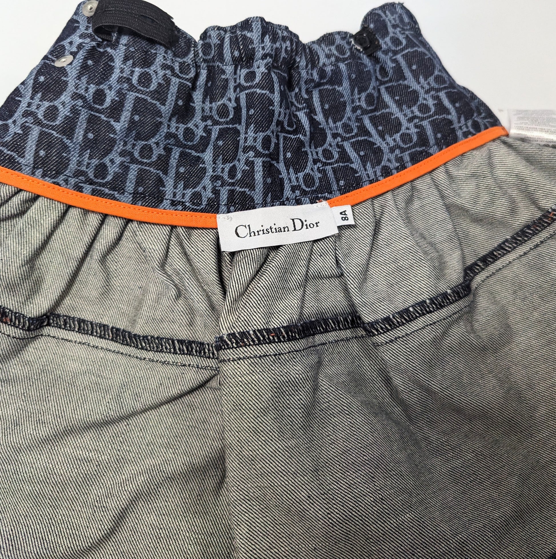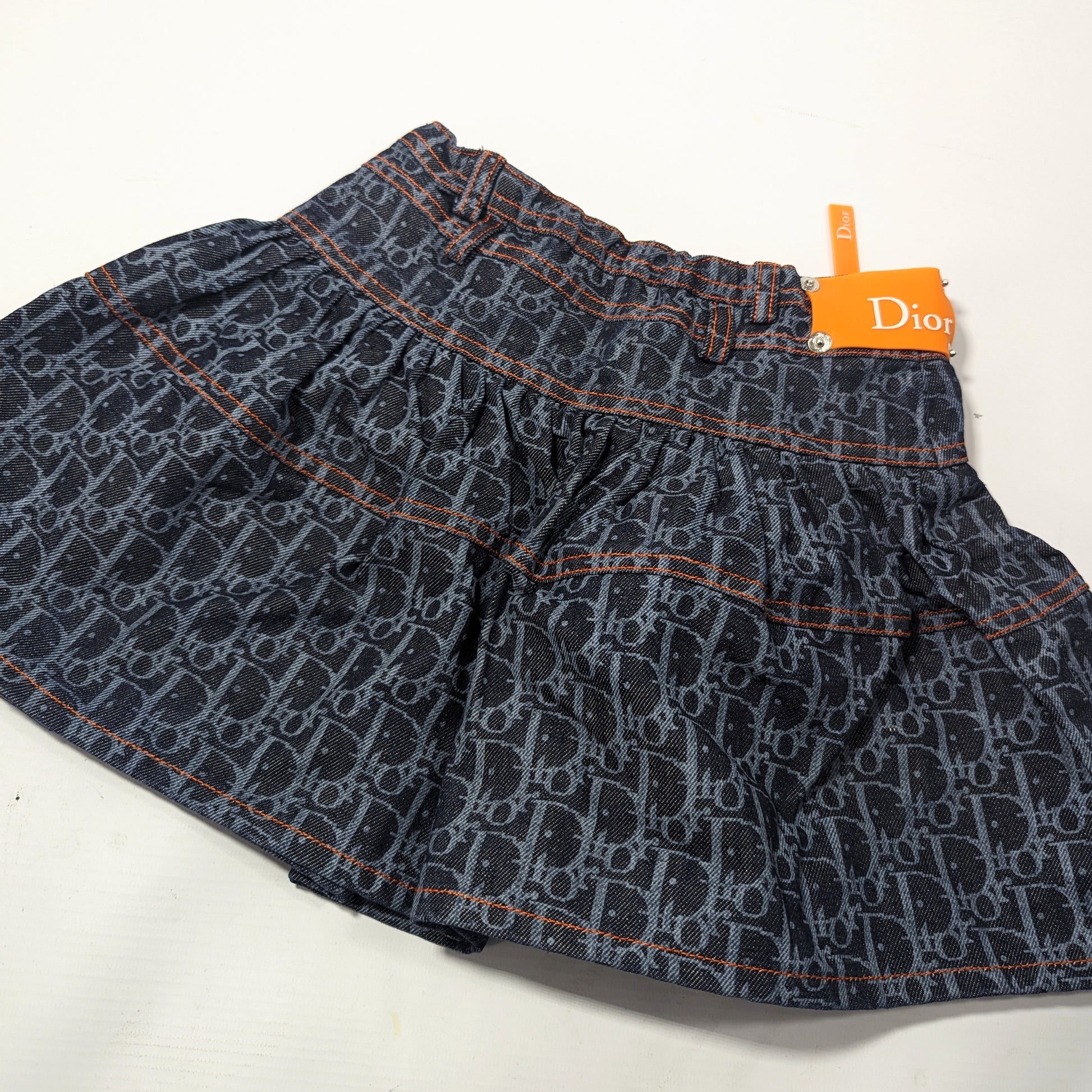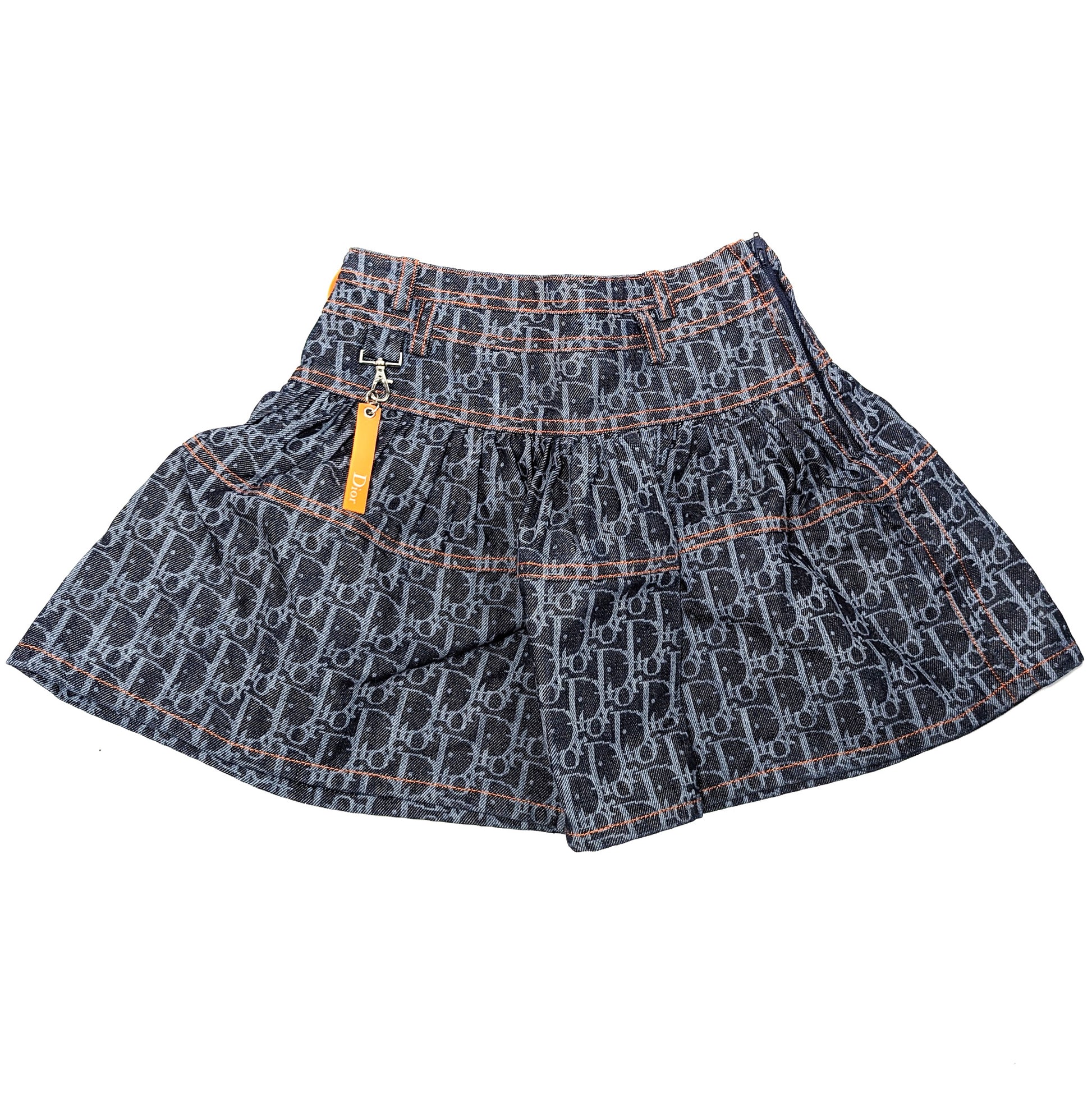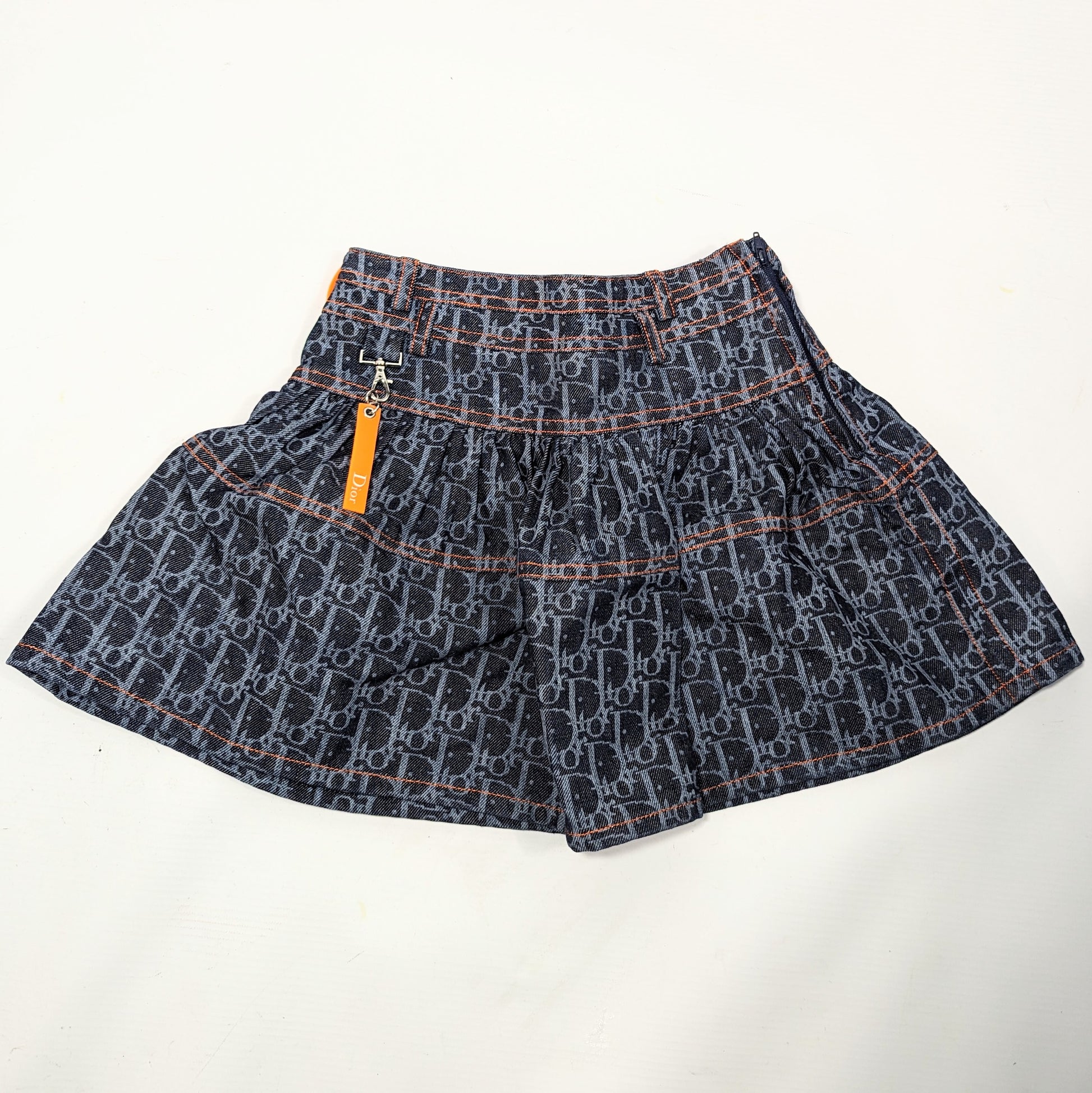 Item: Monogram print denim skirt . Label signed Dior on the back. An interior button allows you to tighten the waist.