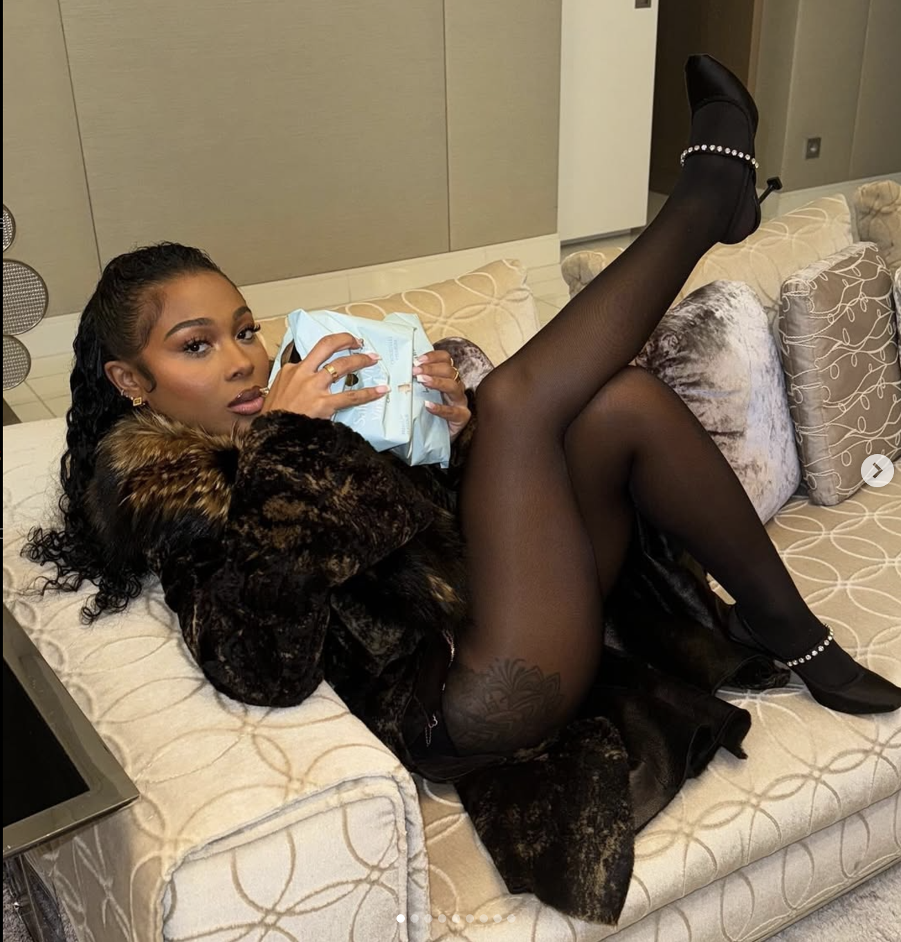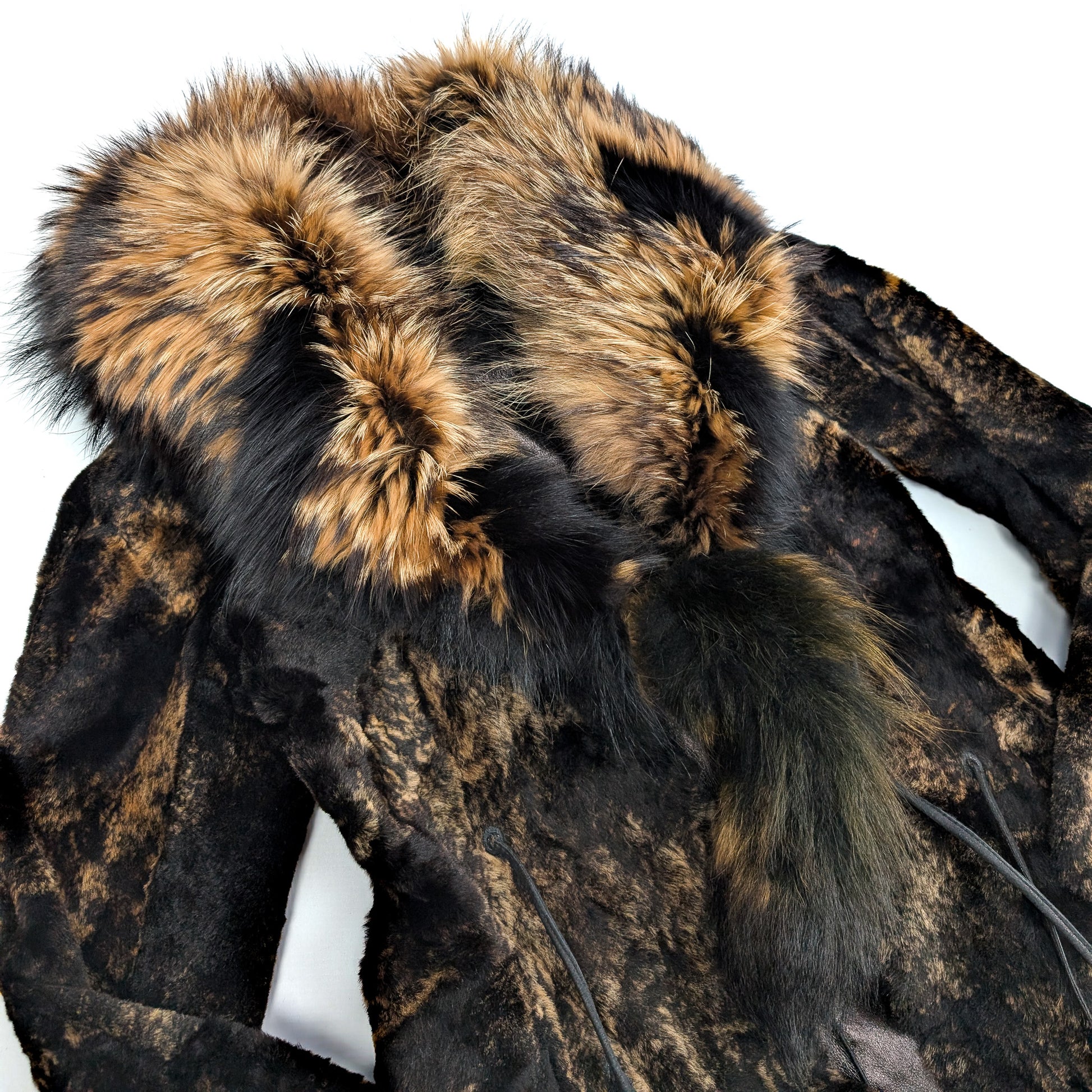 Item: Fitted coat in real fur. Reversible, can be worn on both sides.
