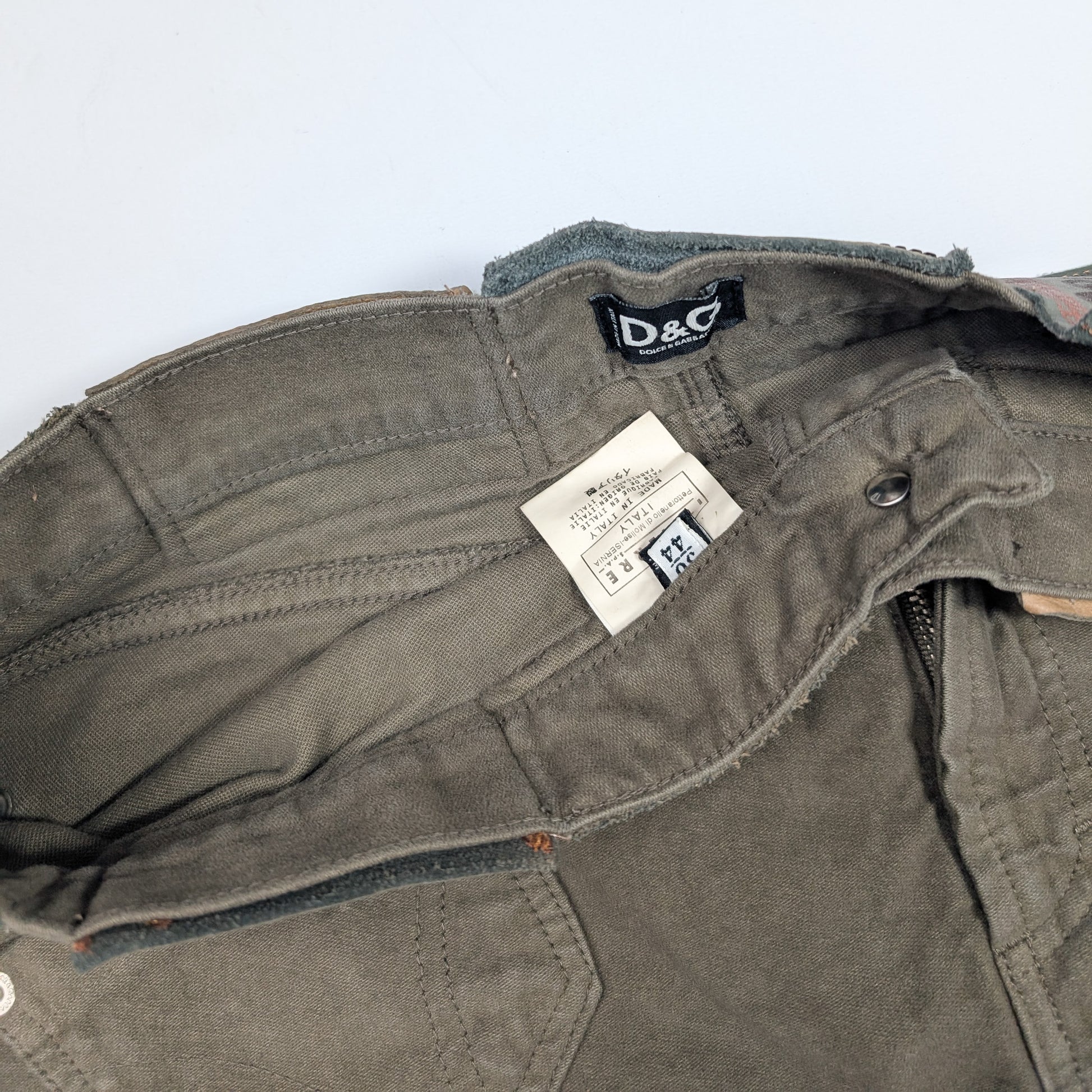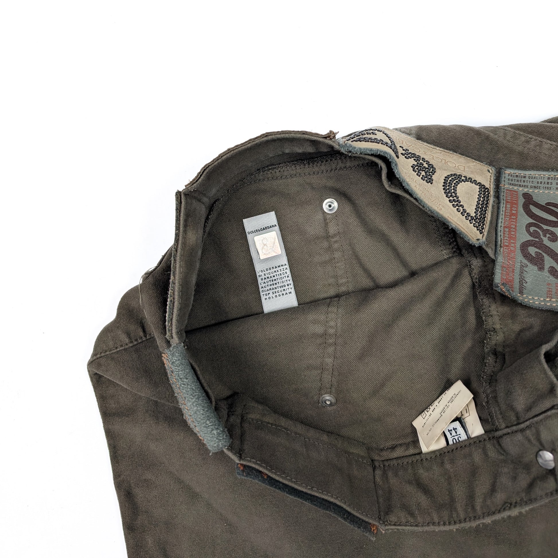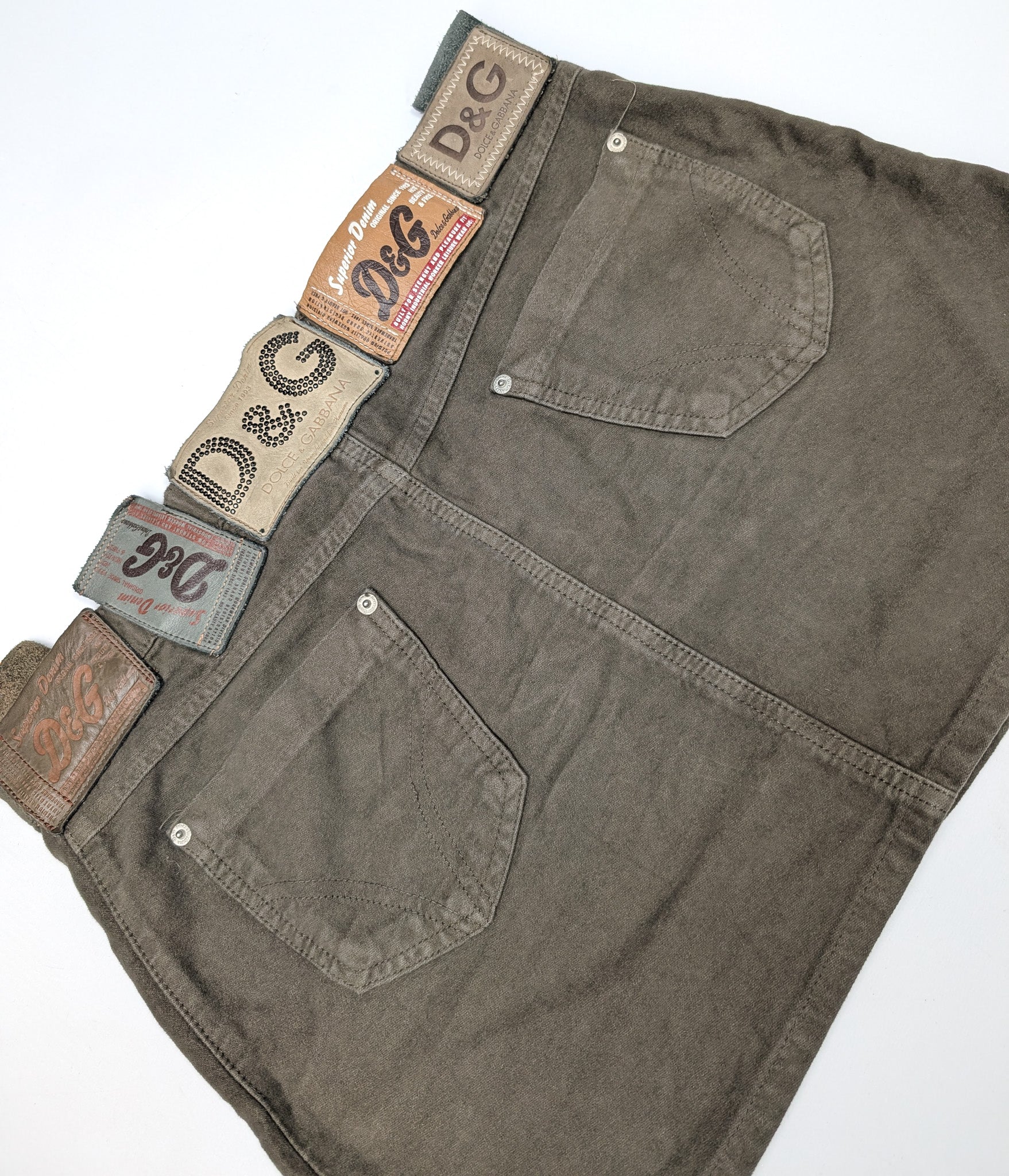 Item: Brown denim mini skirt by Dolce & Gabbana. Multiple leather labels.