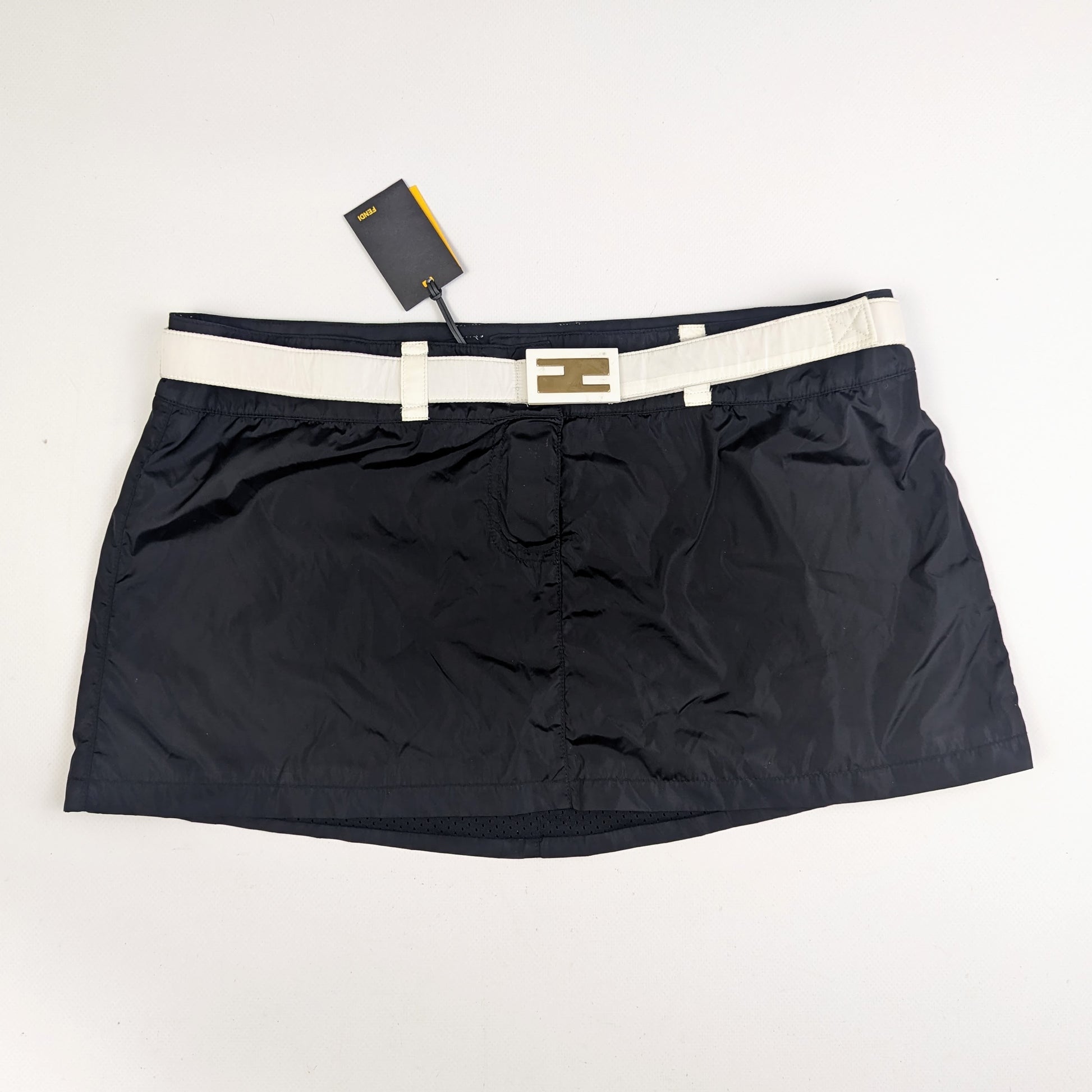 Item: Sporty black and white skirt with a removable belt adorned with an FF logo buckle in white and gold.