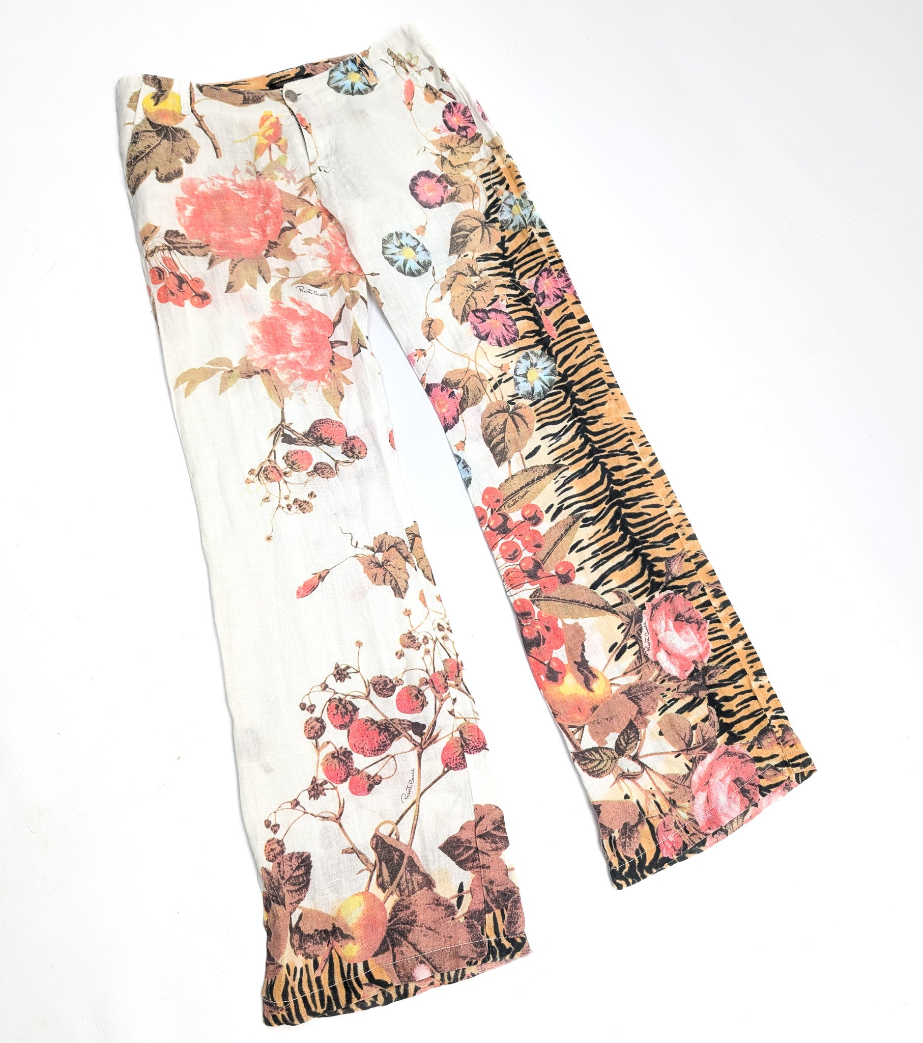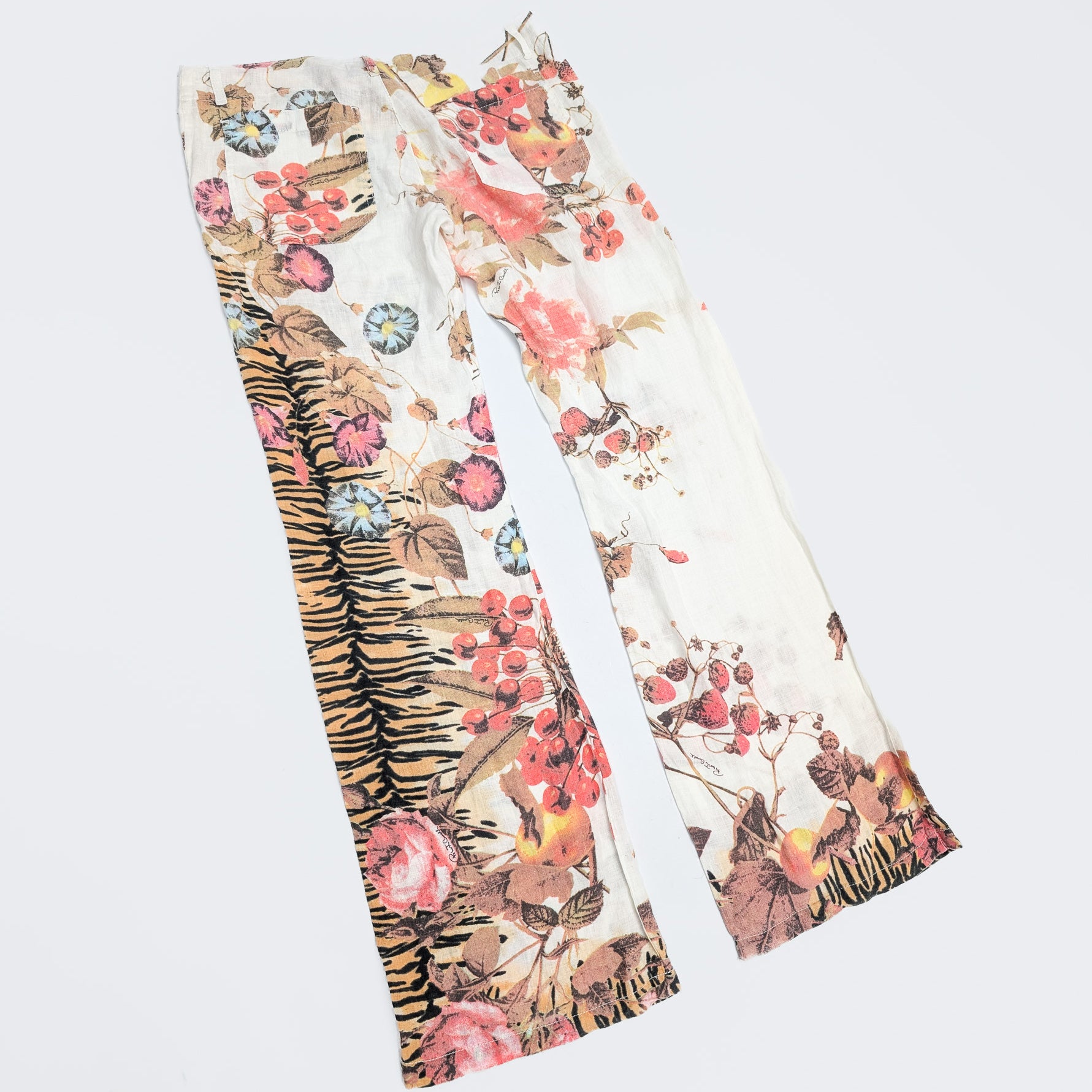 Roberto Cavalli floral print linen trousers - M