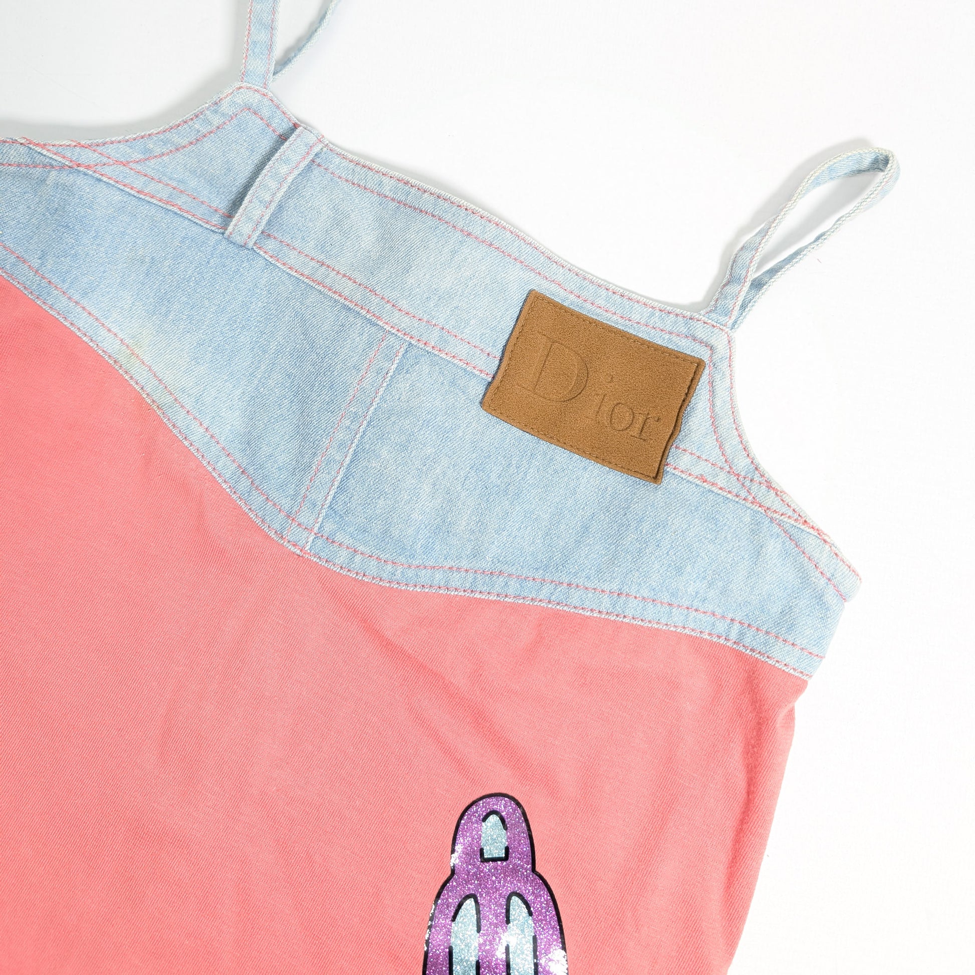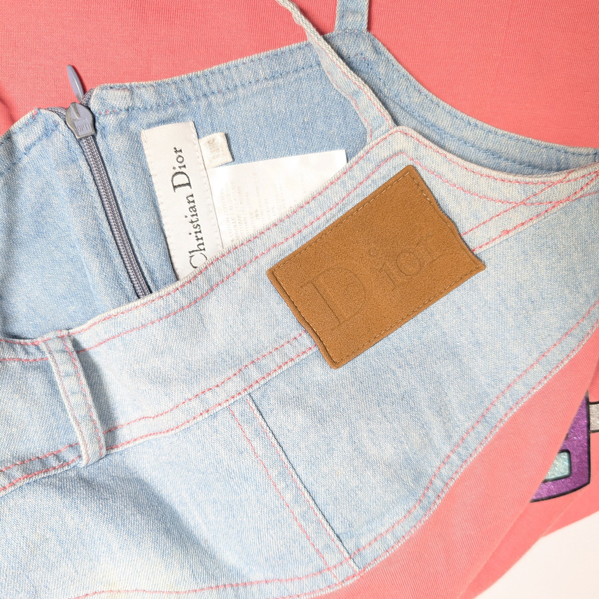 Item: Dior cotton dress by Galliano decorated with an embossed "Dior" label. Slightly stretchy.