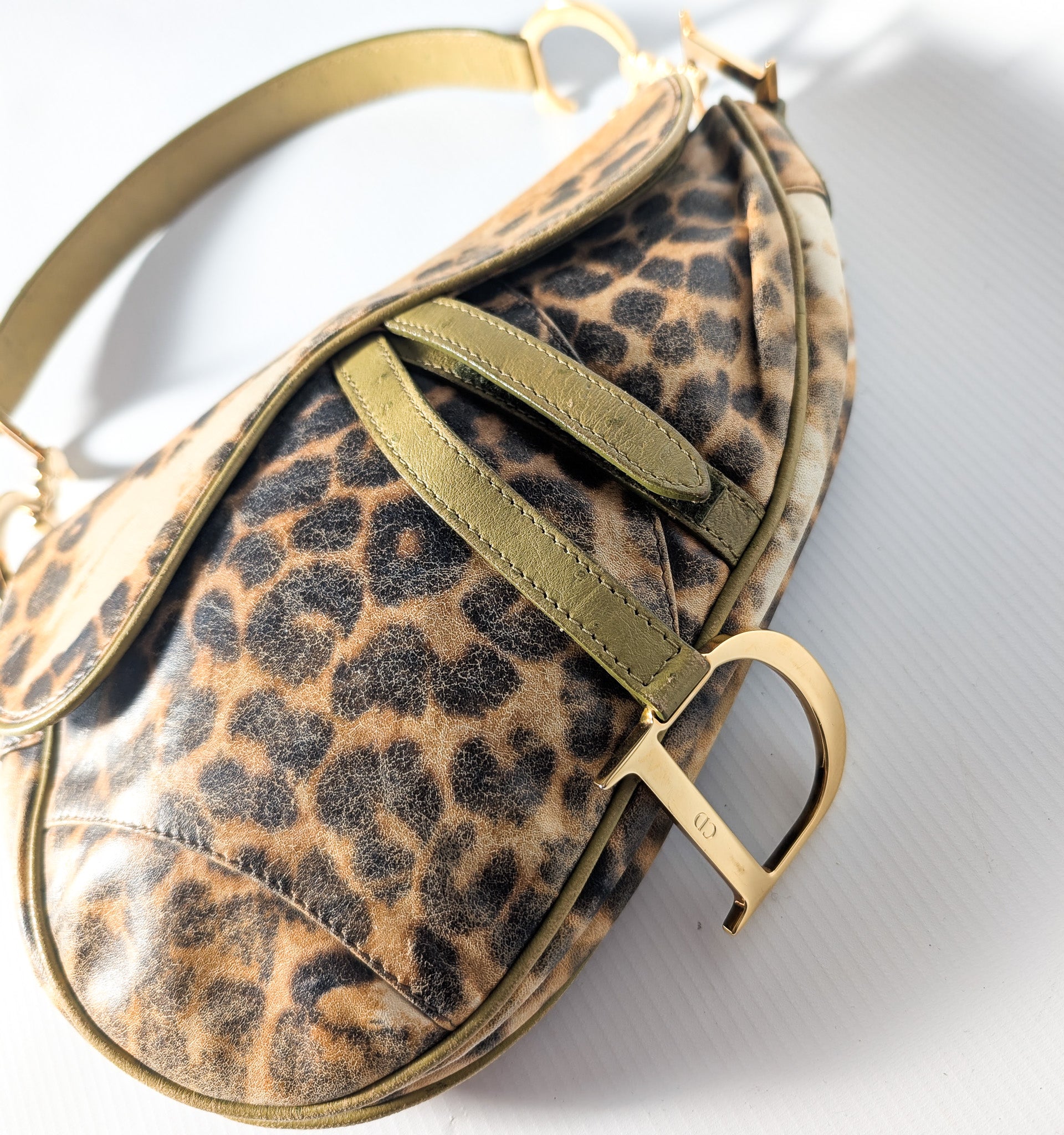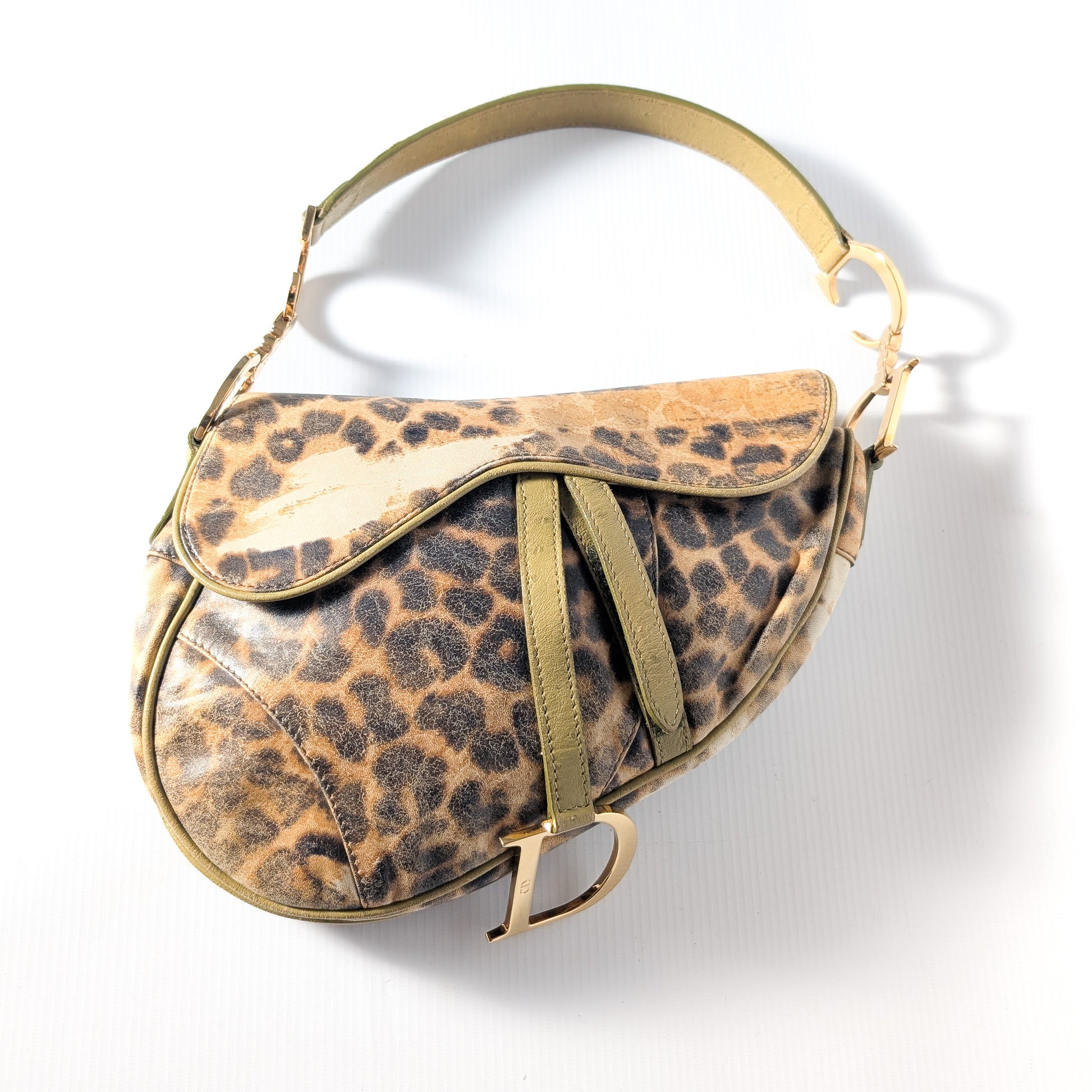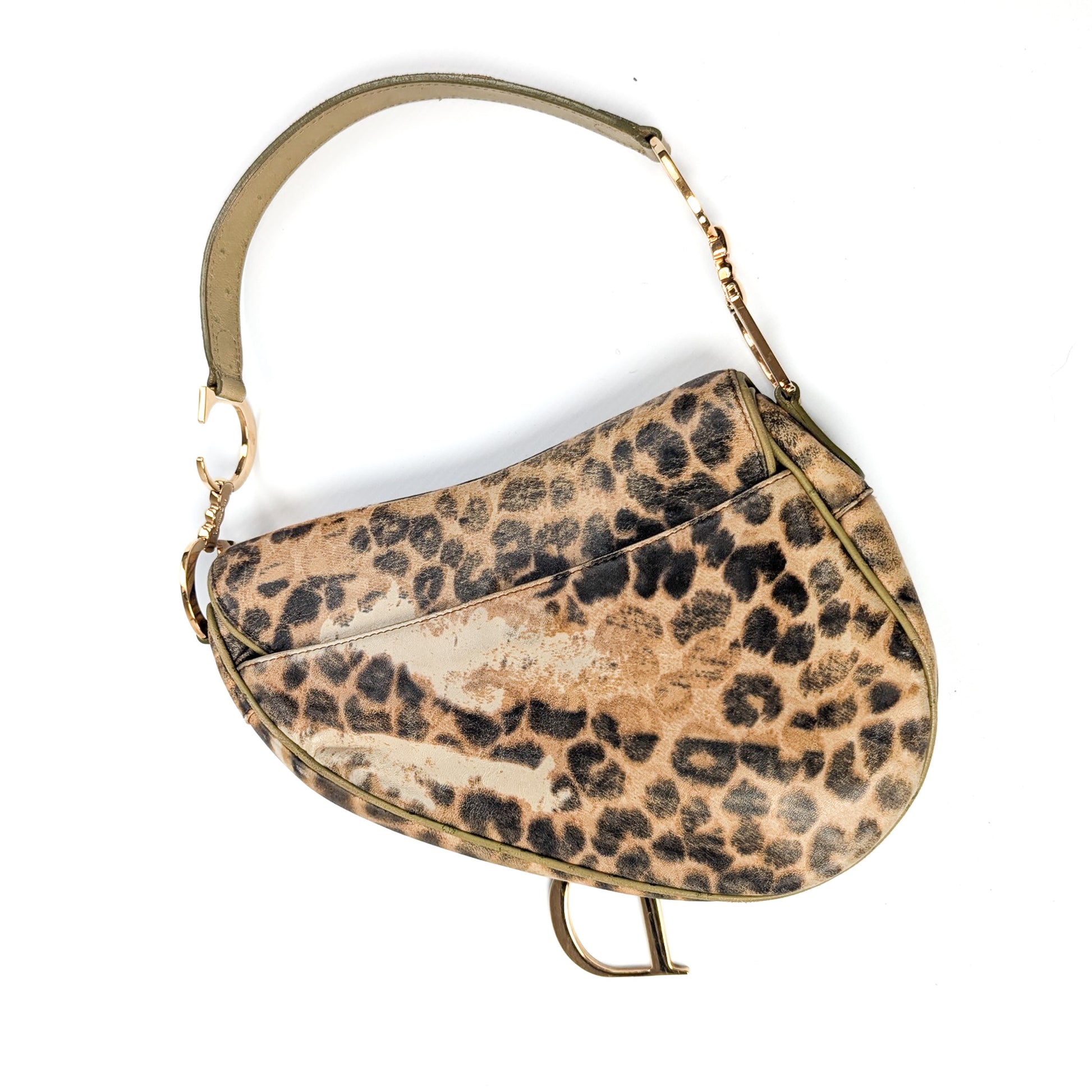 Item: Saddle bag in leather with an iconic print from the Winter 2000 fashion show. Leopard print with destroyed effect.