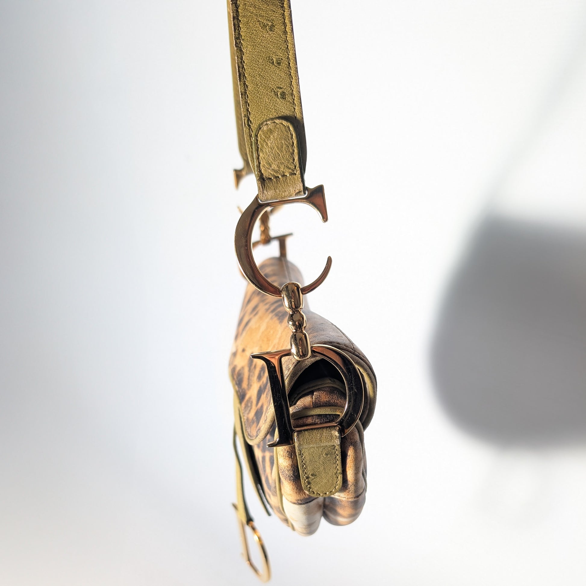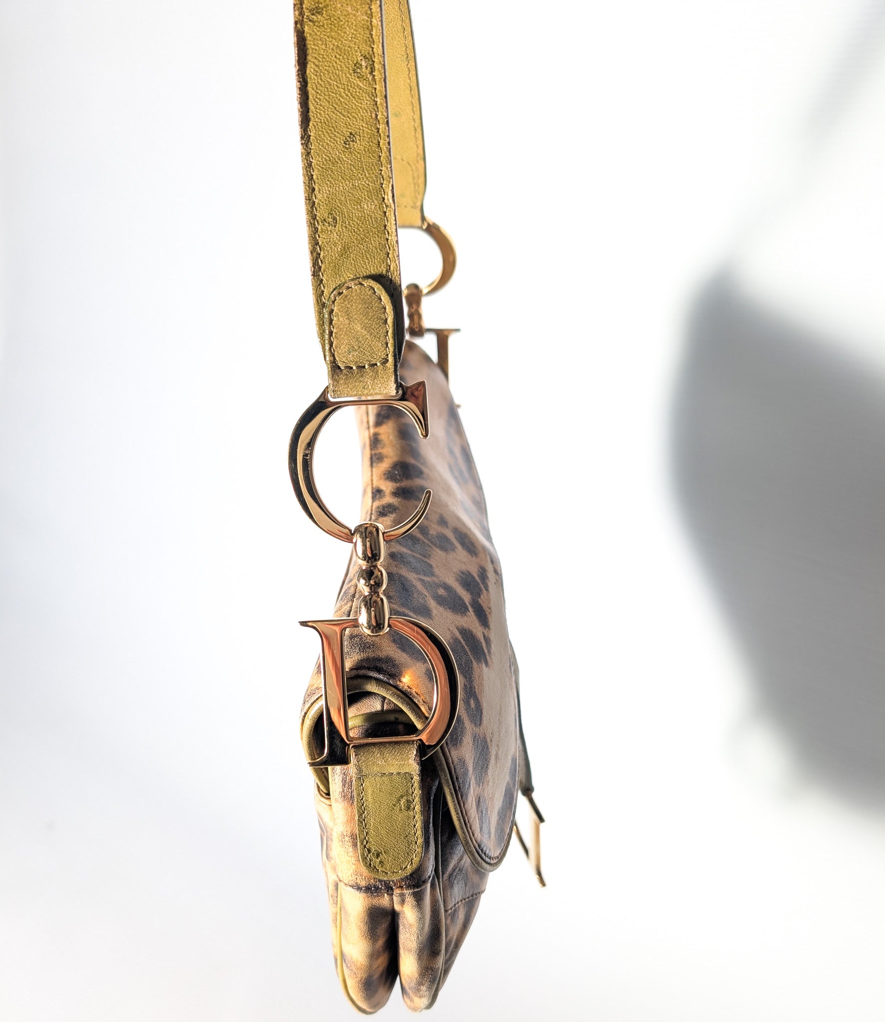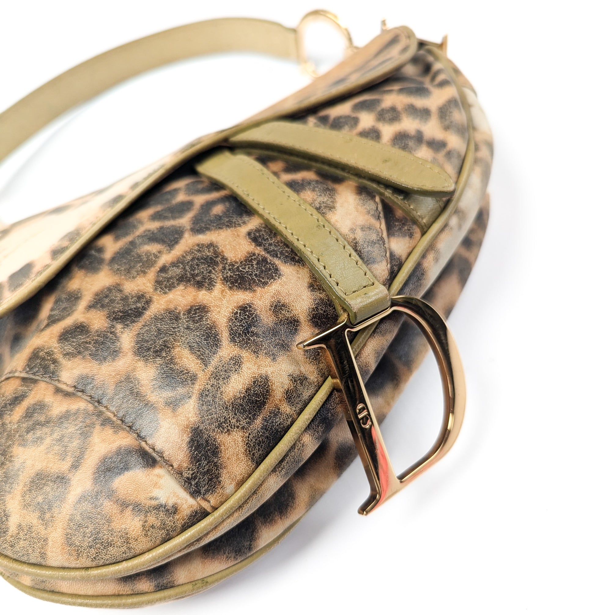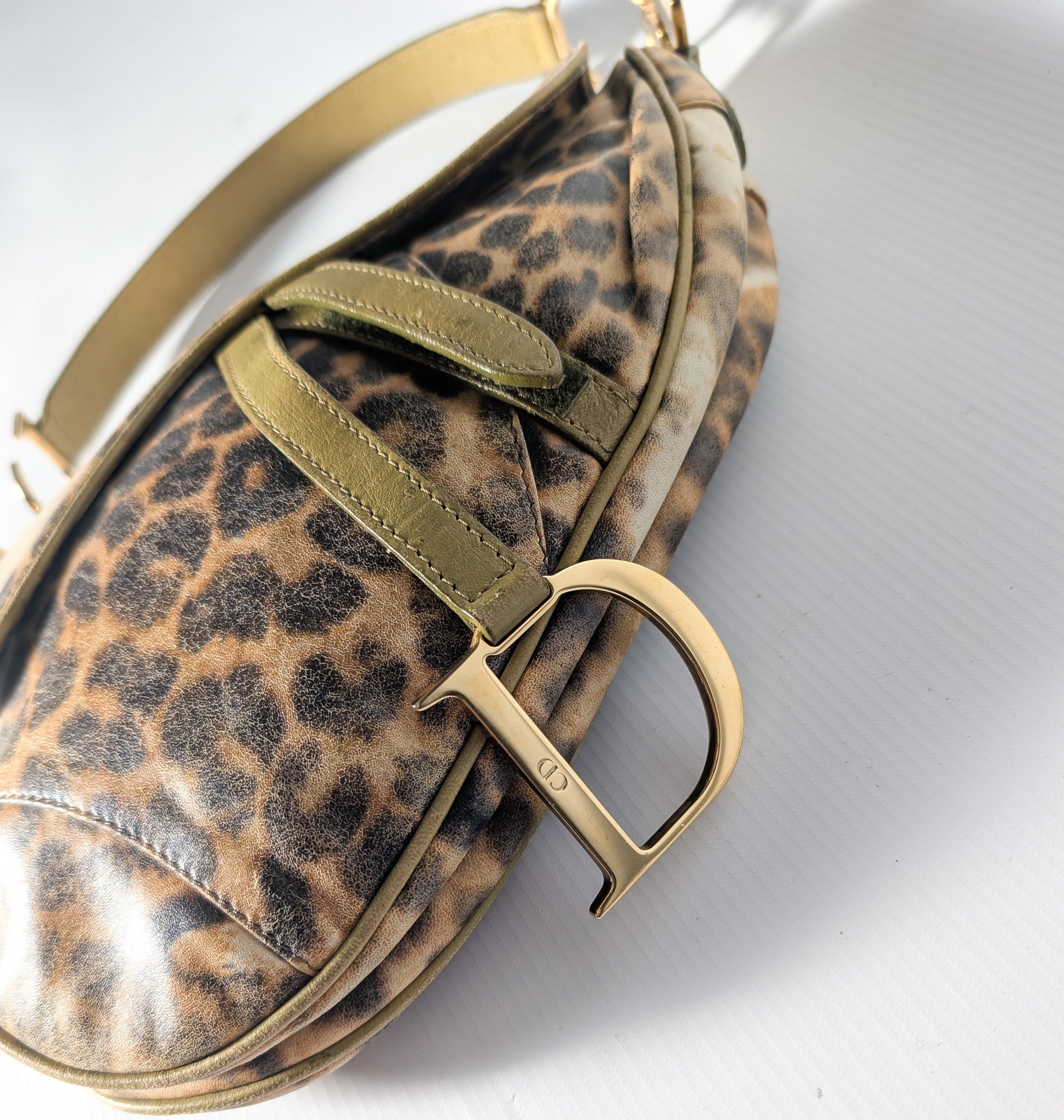 Item: Saddle bag in leather with an iconic print from the Winter 2000 fashion show. Leopard print with destroyed effect.
