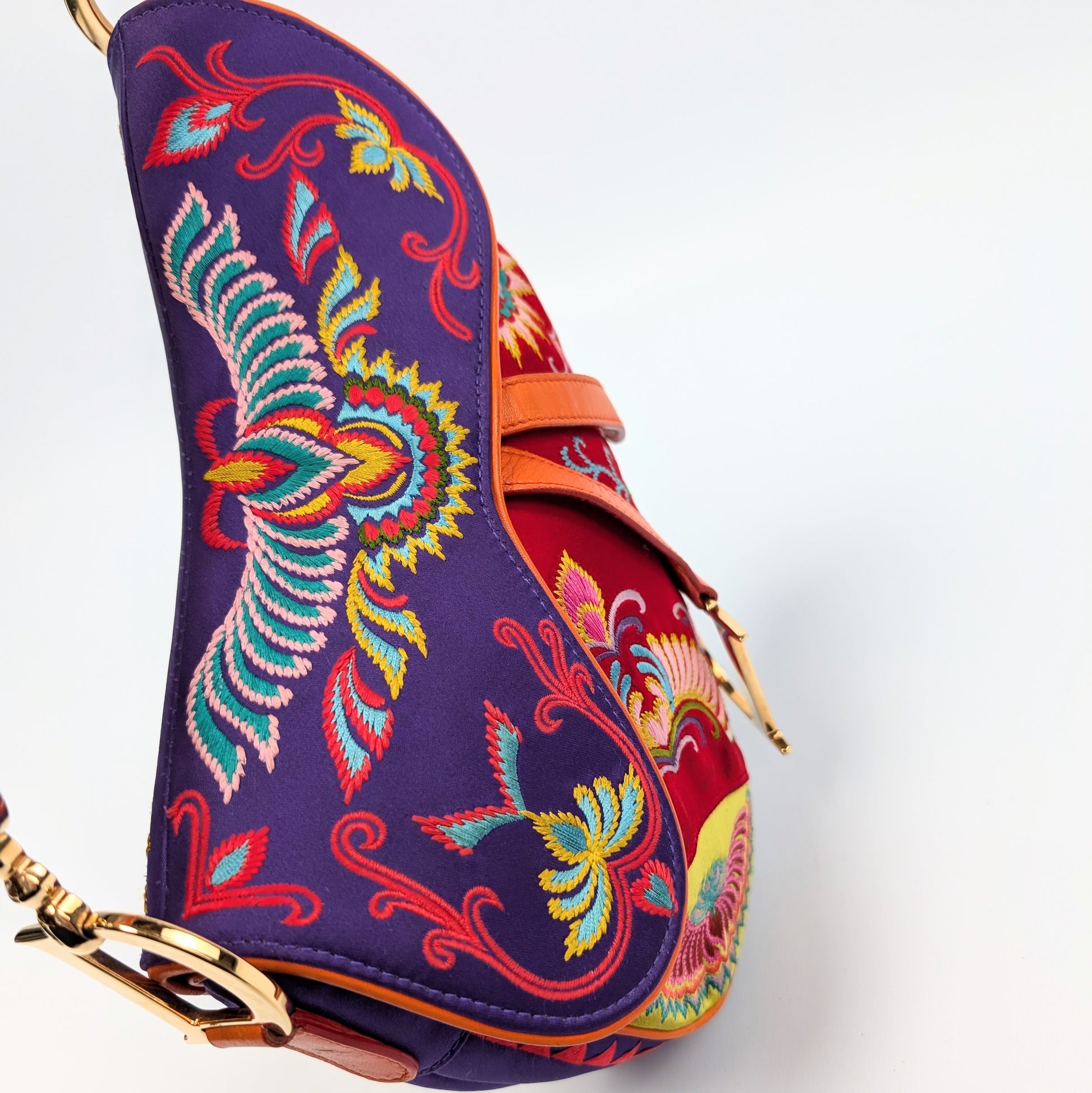 Item: Saddle in multicolored satin