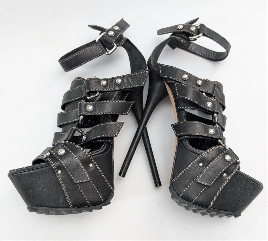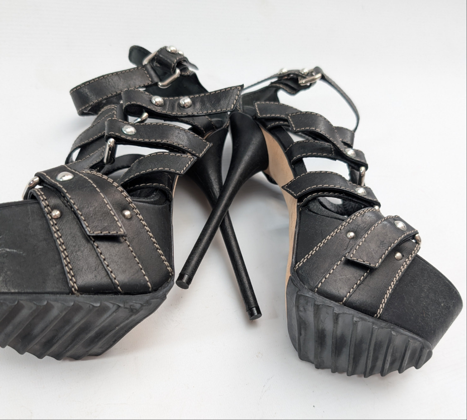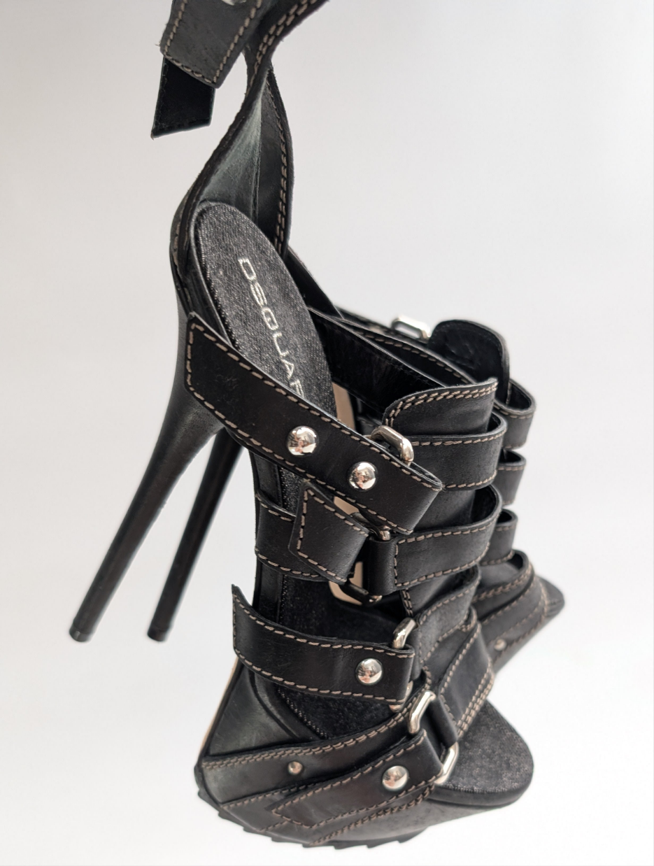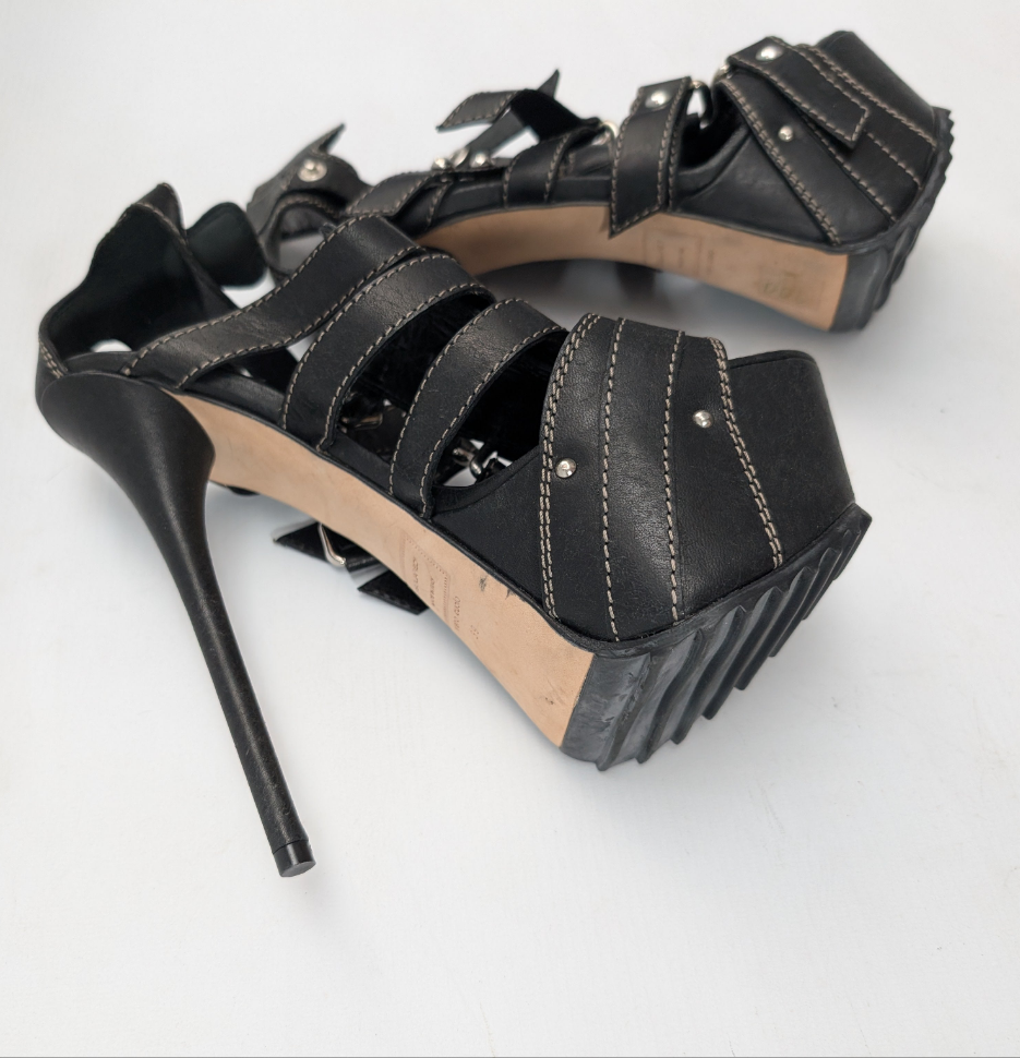 Item: Dsquared2 black leather gladiator style sandals with platform and tie.