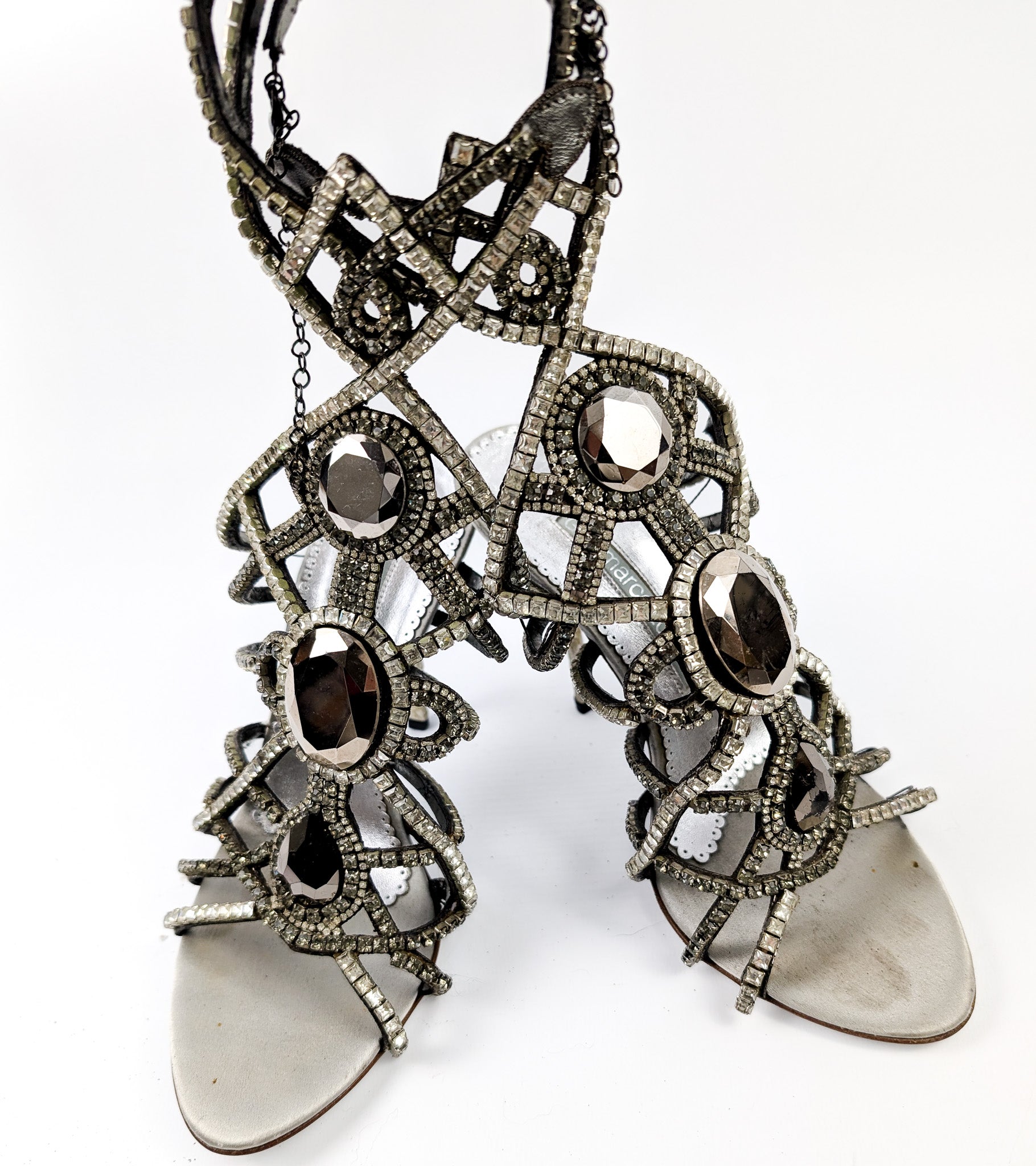 Item: Gianmarco Lorenzi high sandals decorated with stone and mini crystals.