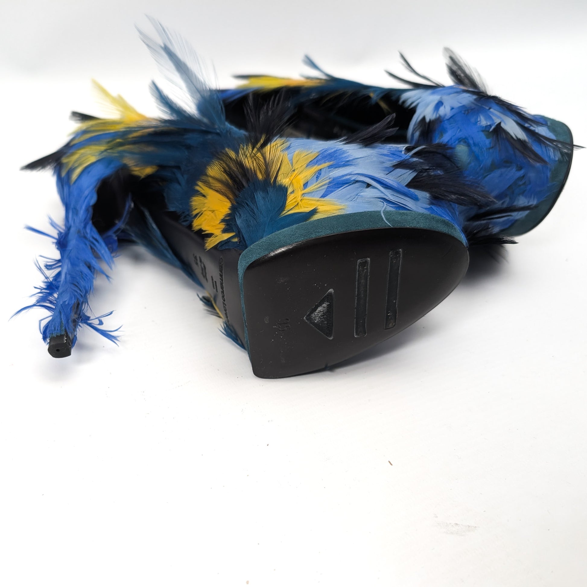 Item: Platform pumps adorned with real feathers by Gianmarco Lorenzi