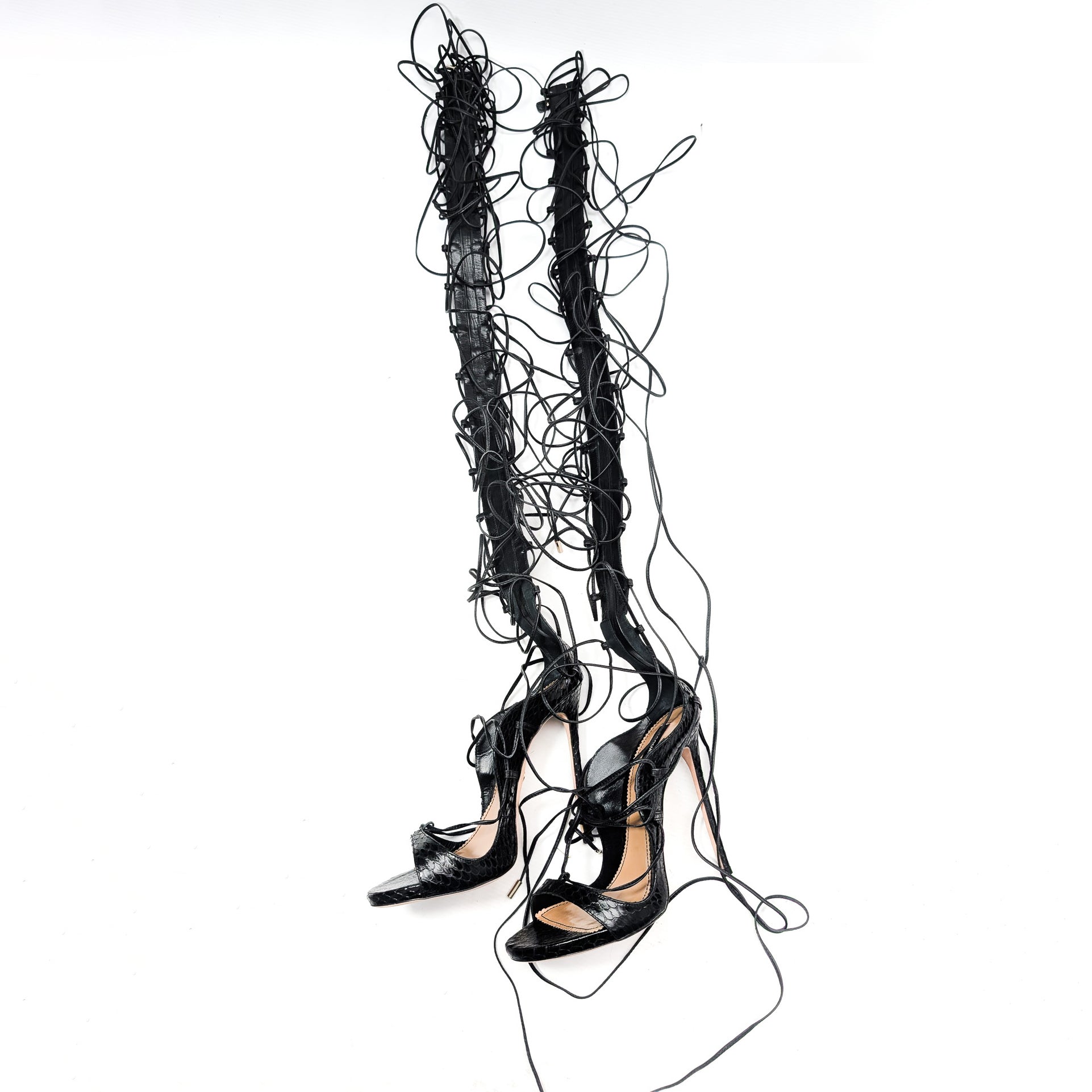 Item: Black high-top lace-up sandals. This is the tallest model.