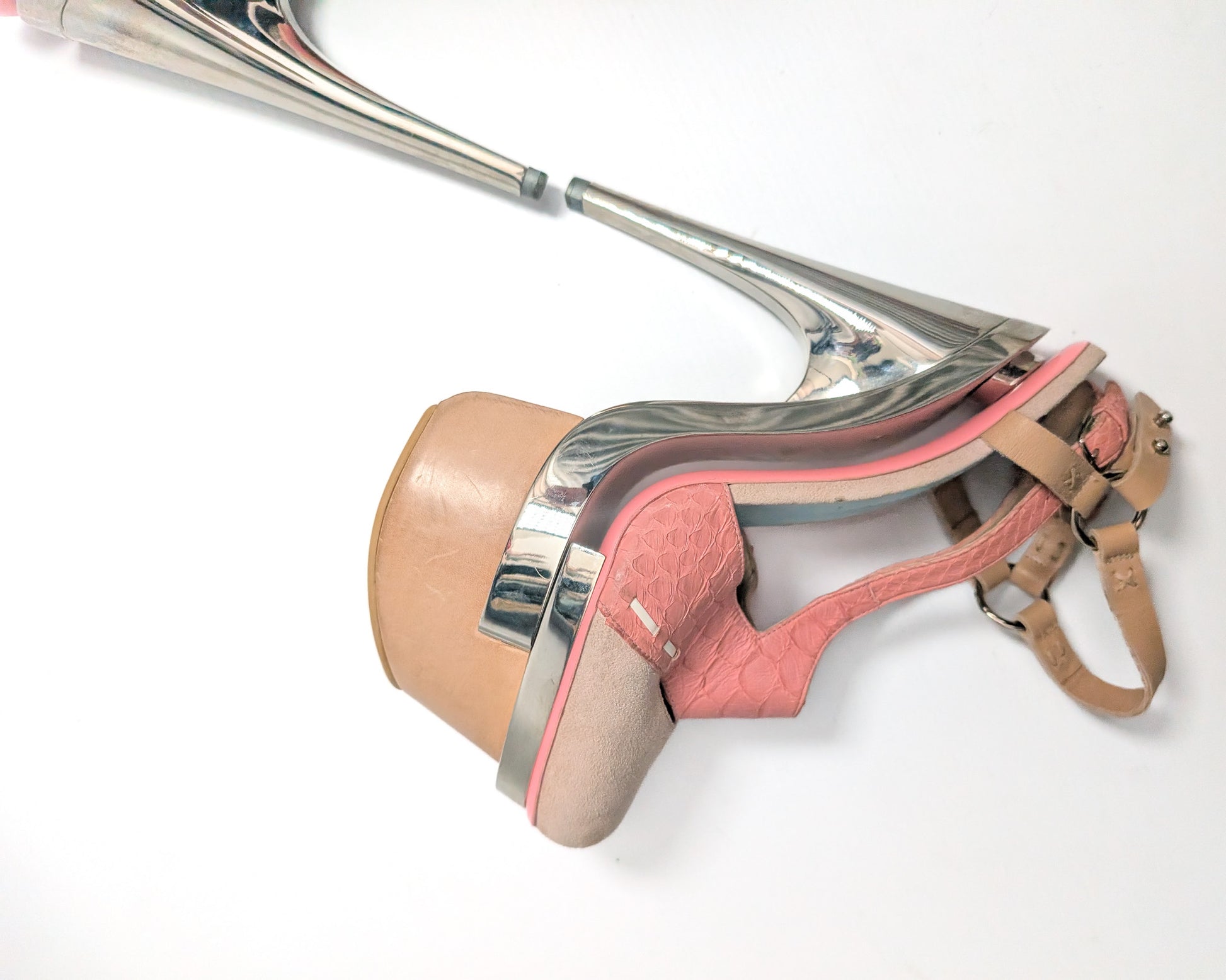 Item: Versace pink platform sandals in leather and suede.