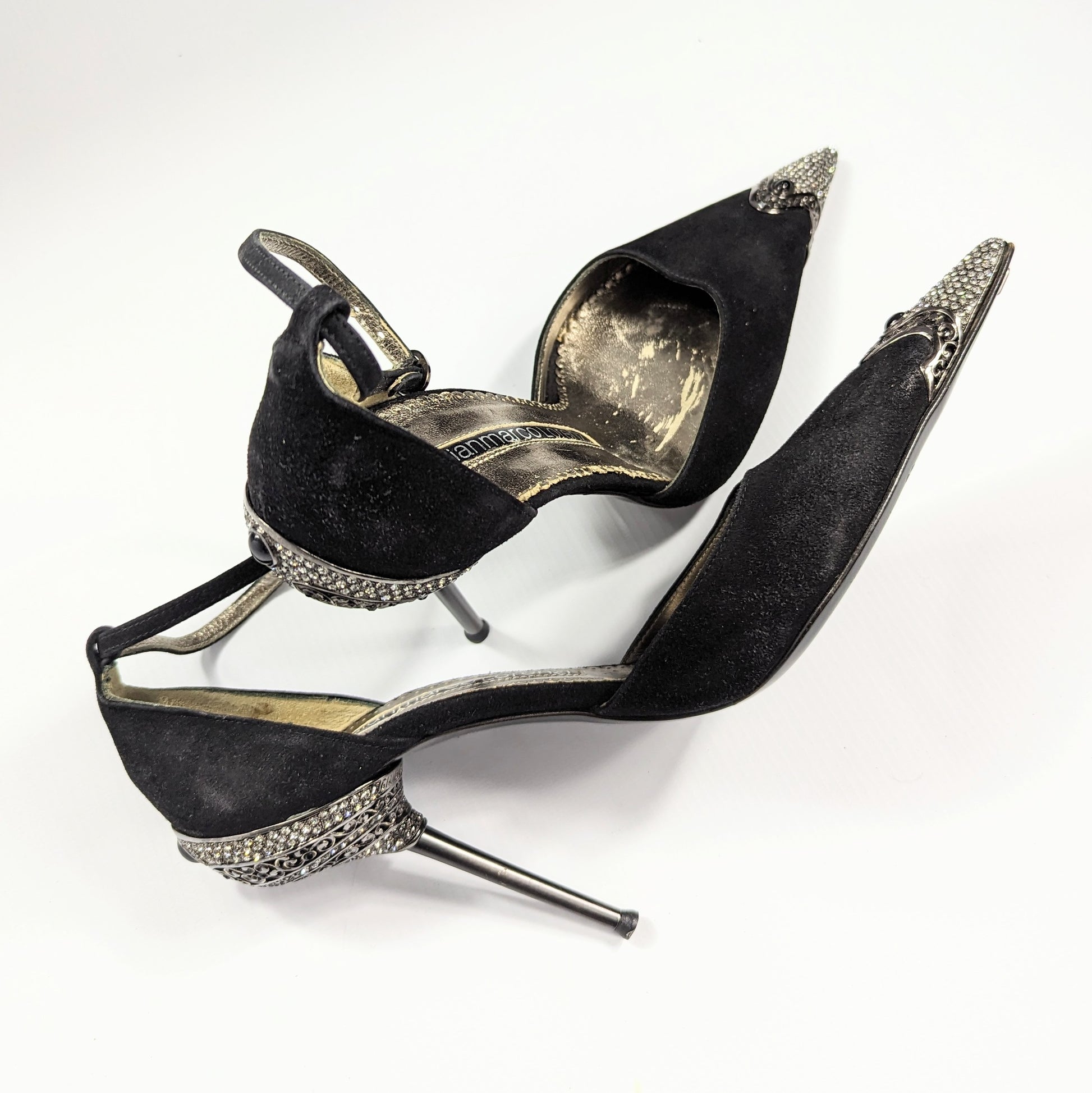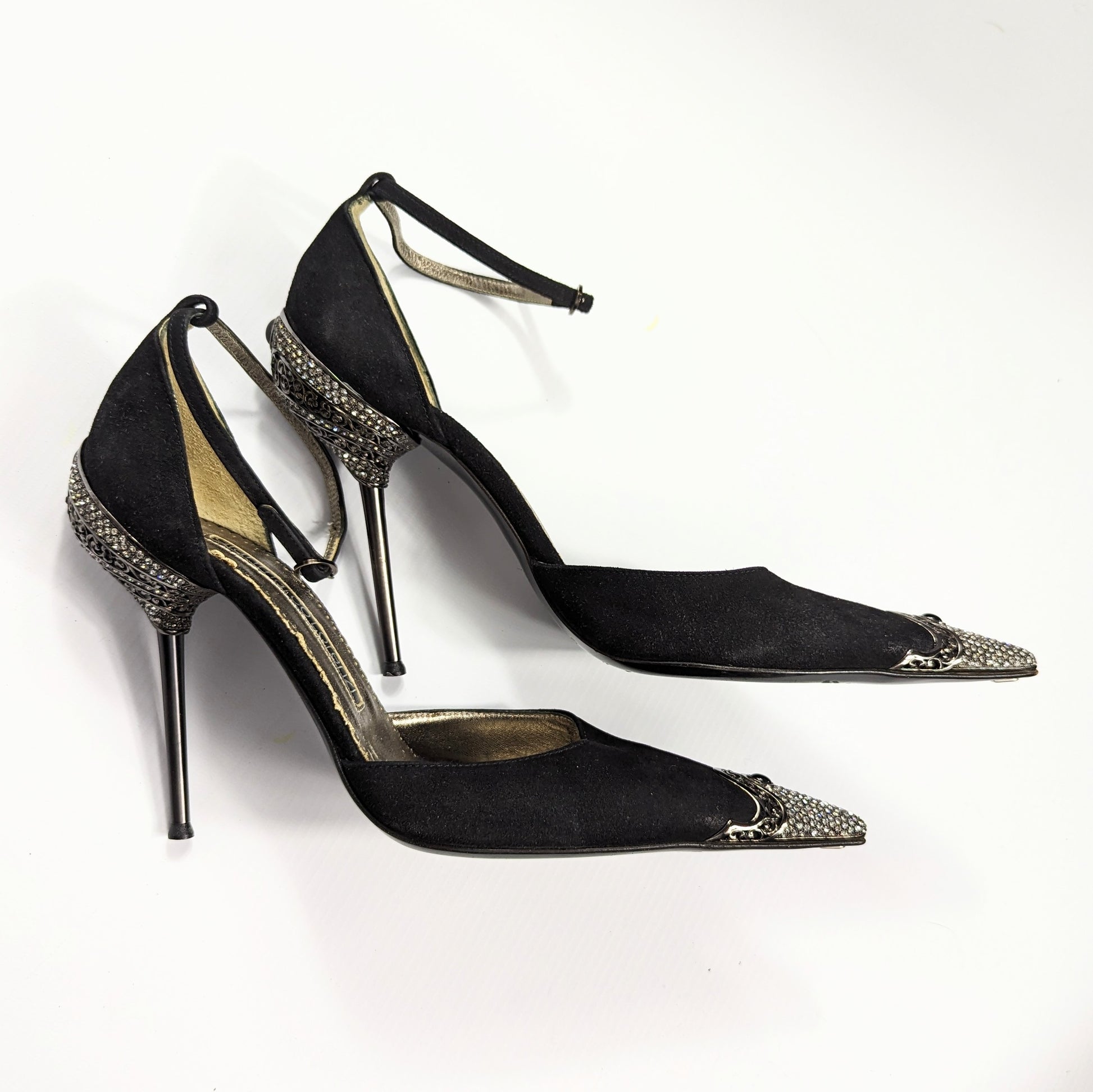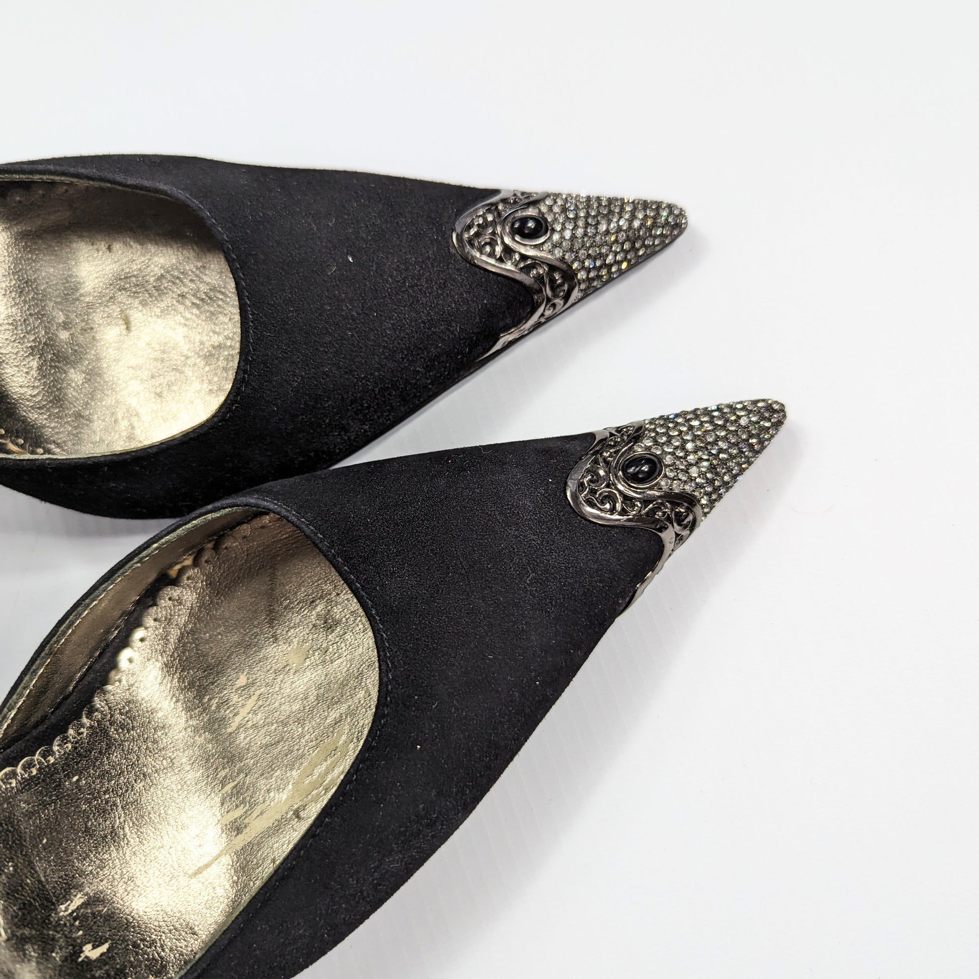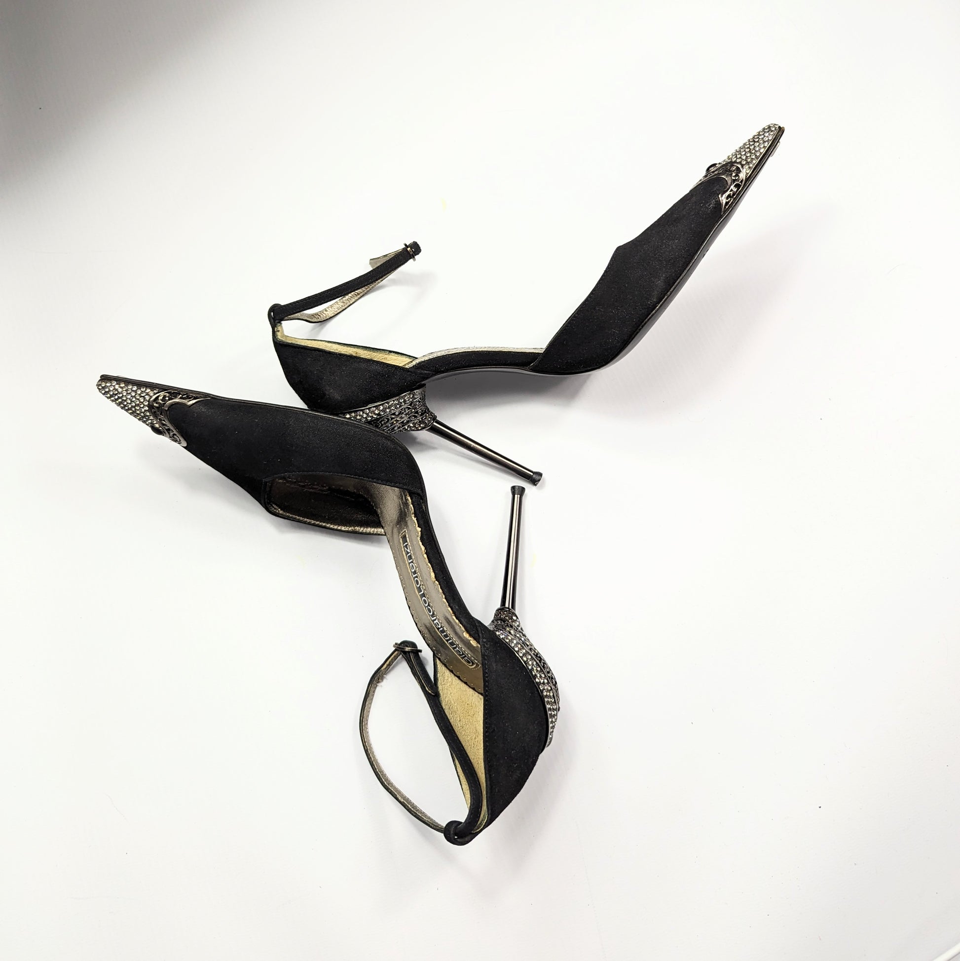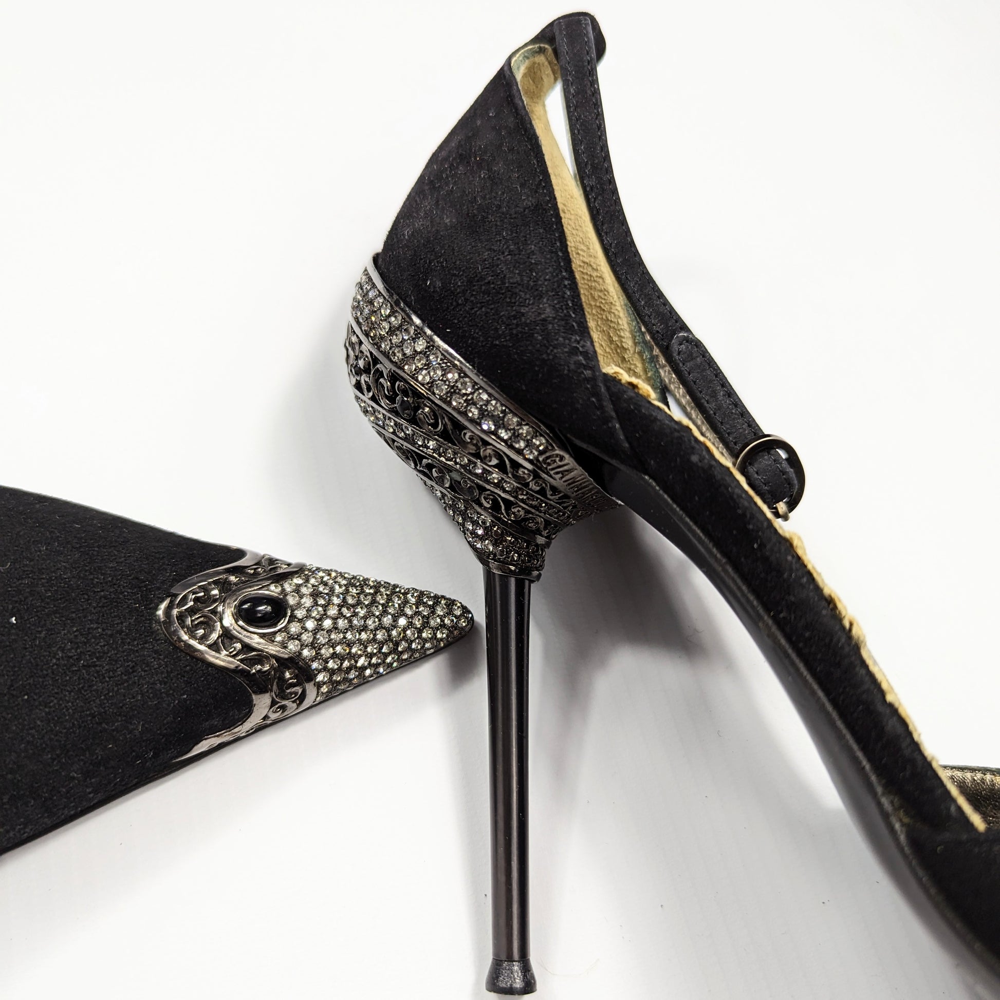 Item: Gianmarco Lorenzi suede slingback sandals . Heels and toes adorned with Swarovski crystals.
