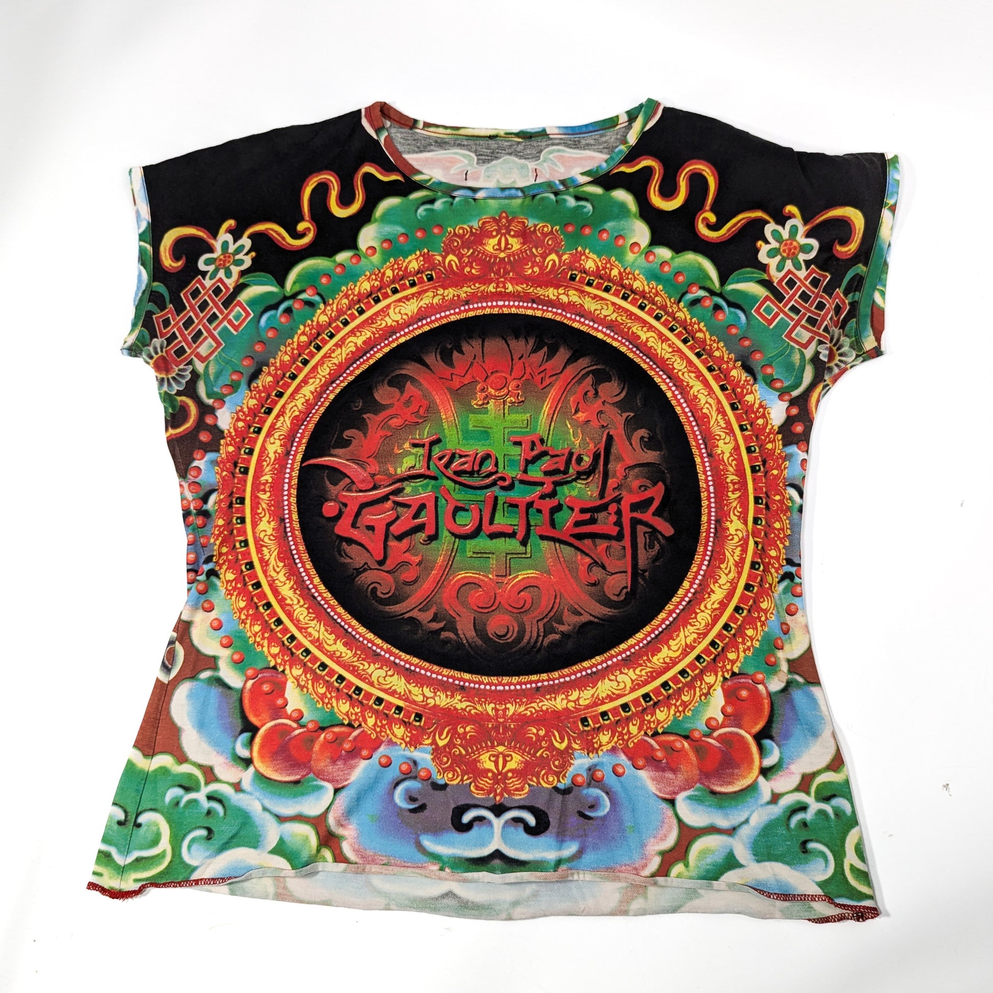 Item: T-shirt à manche court à imprimé psychédélique à inscription "Jean-Paul Gaultier".