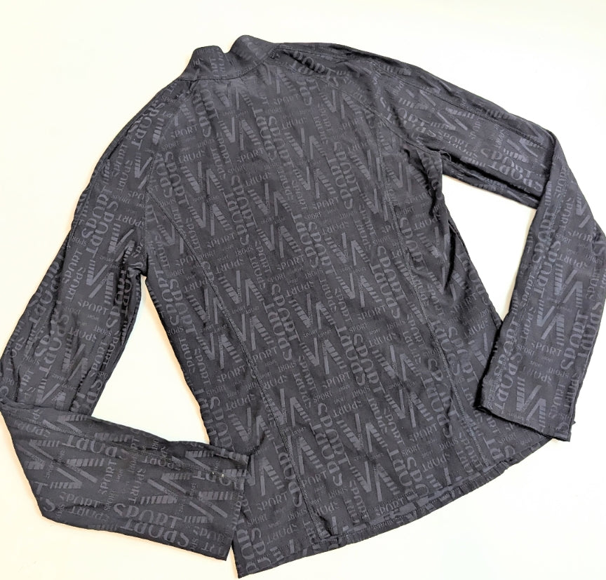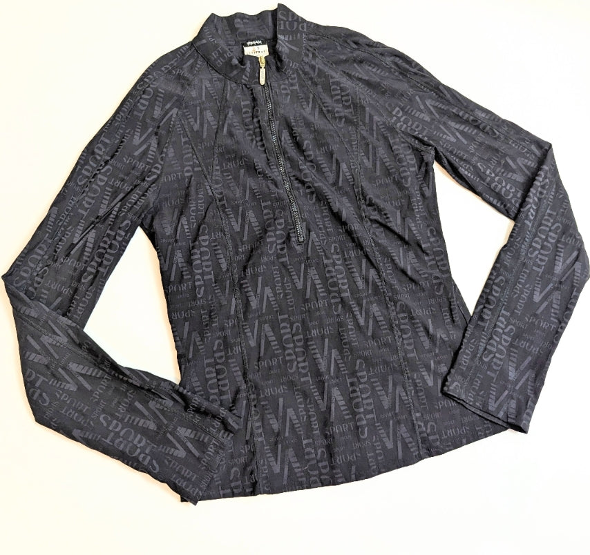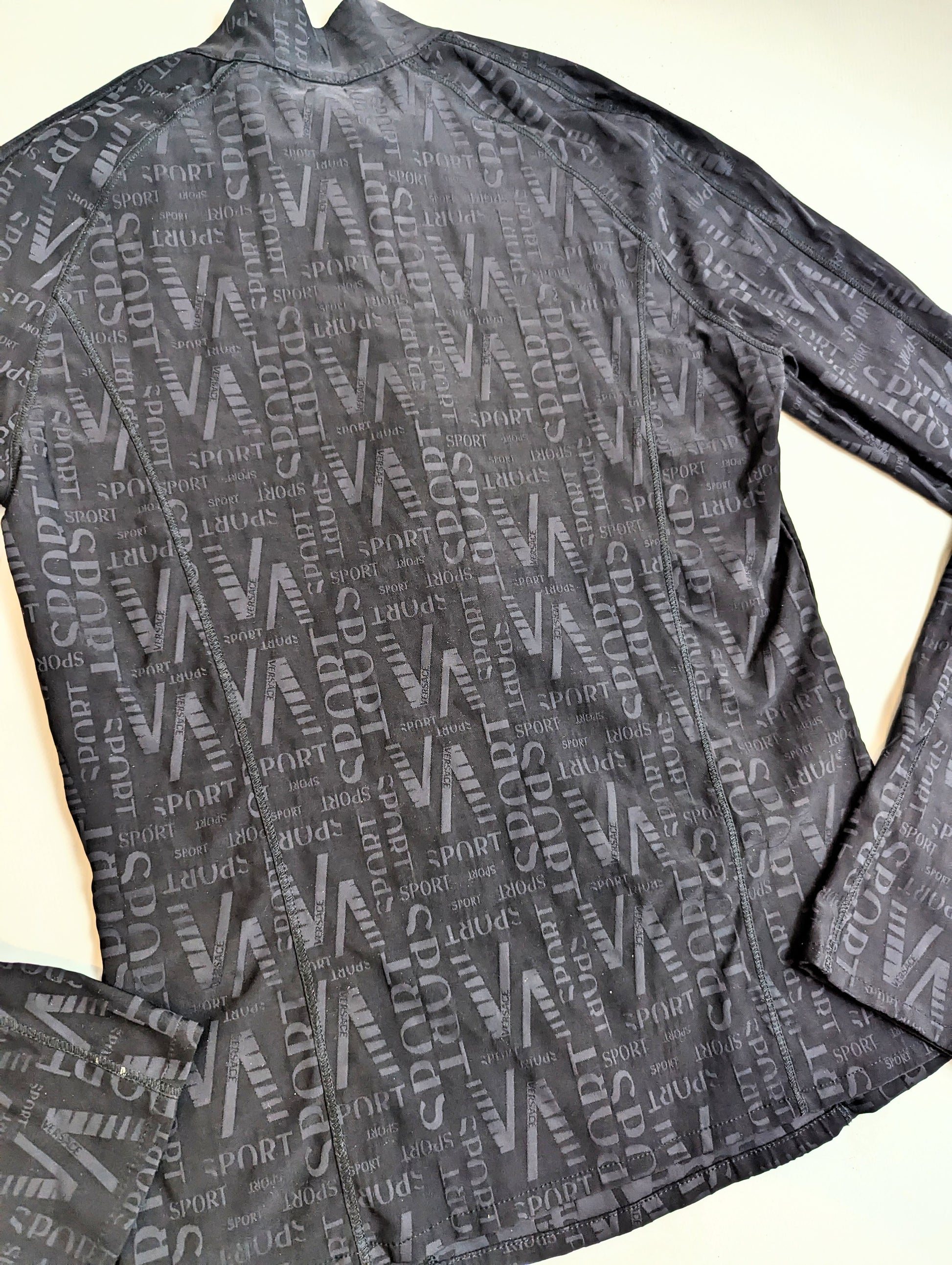 Item: Versace black long-sleeved sports style top with embossed monogram.