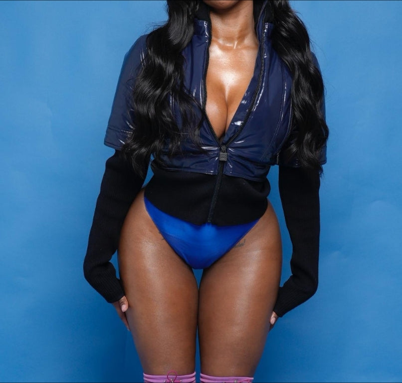Item: Chanel two-tone down sport jacket, adorned with Chanel logo on the closures.