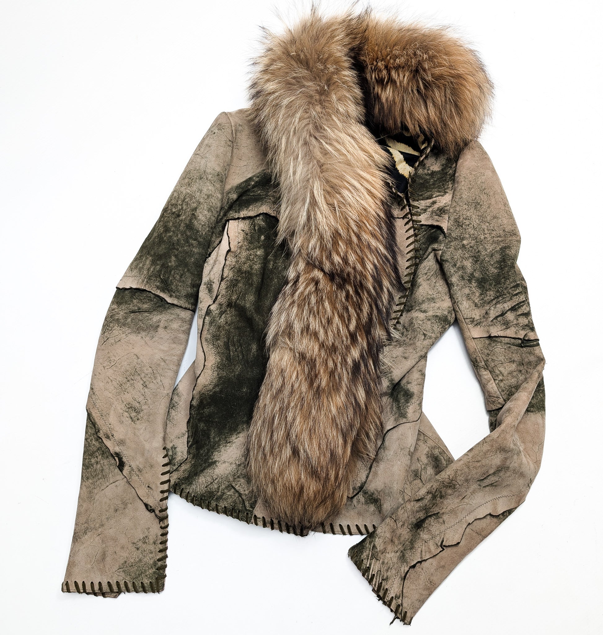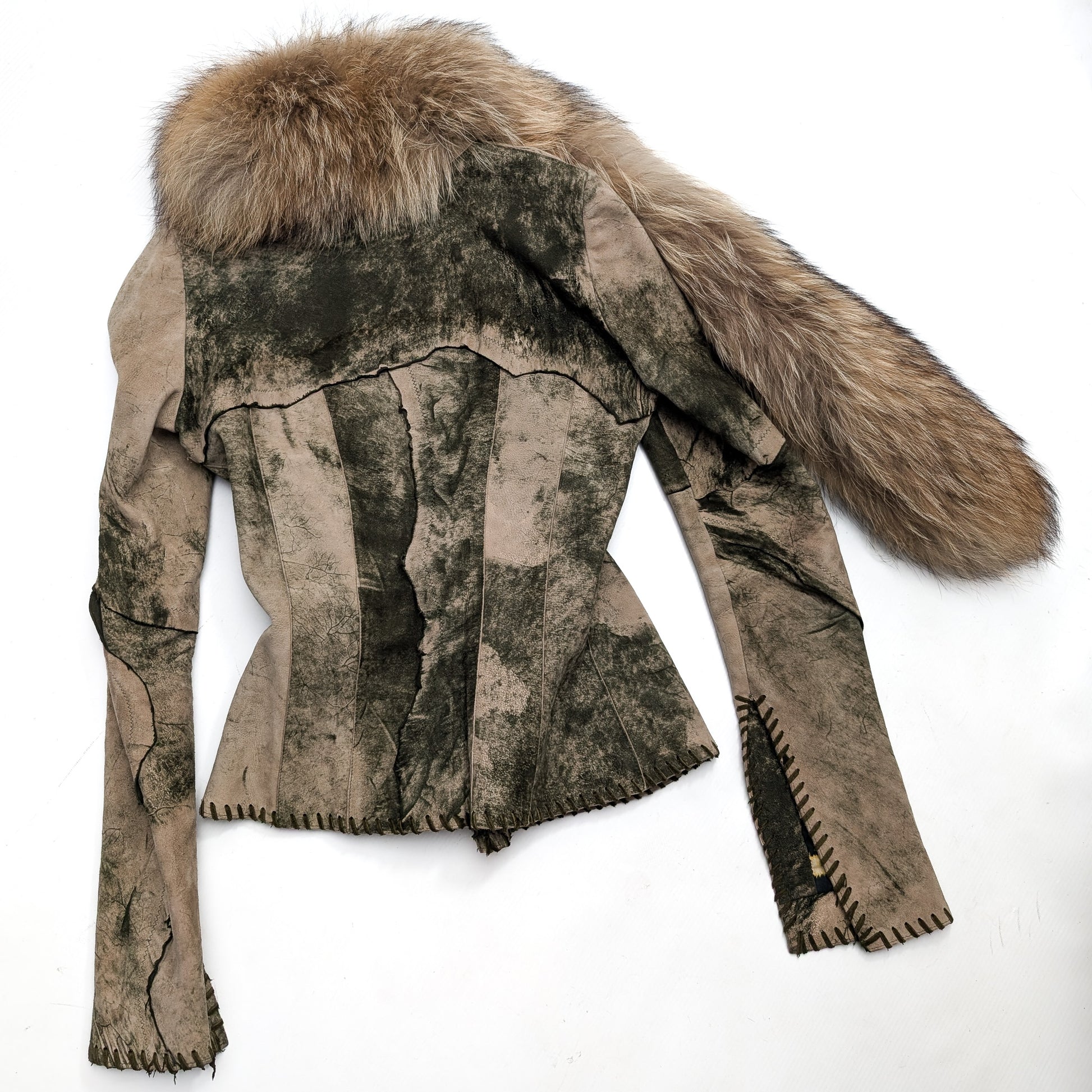Item: Fitted suede jacket trimmed with fur.